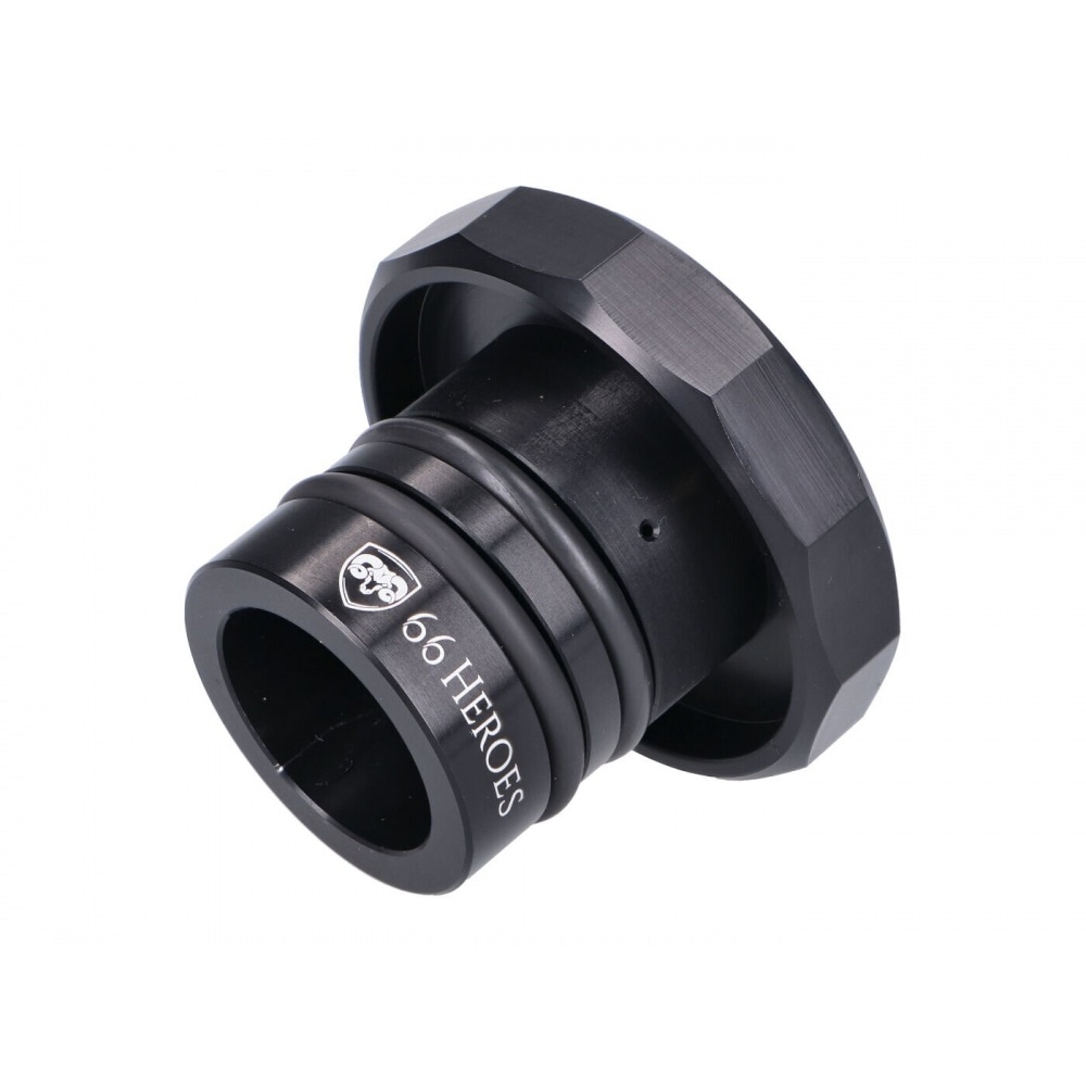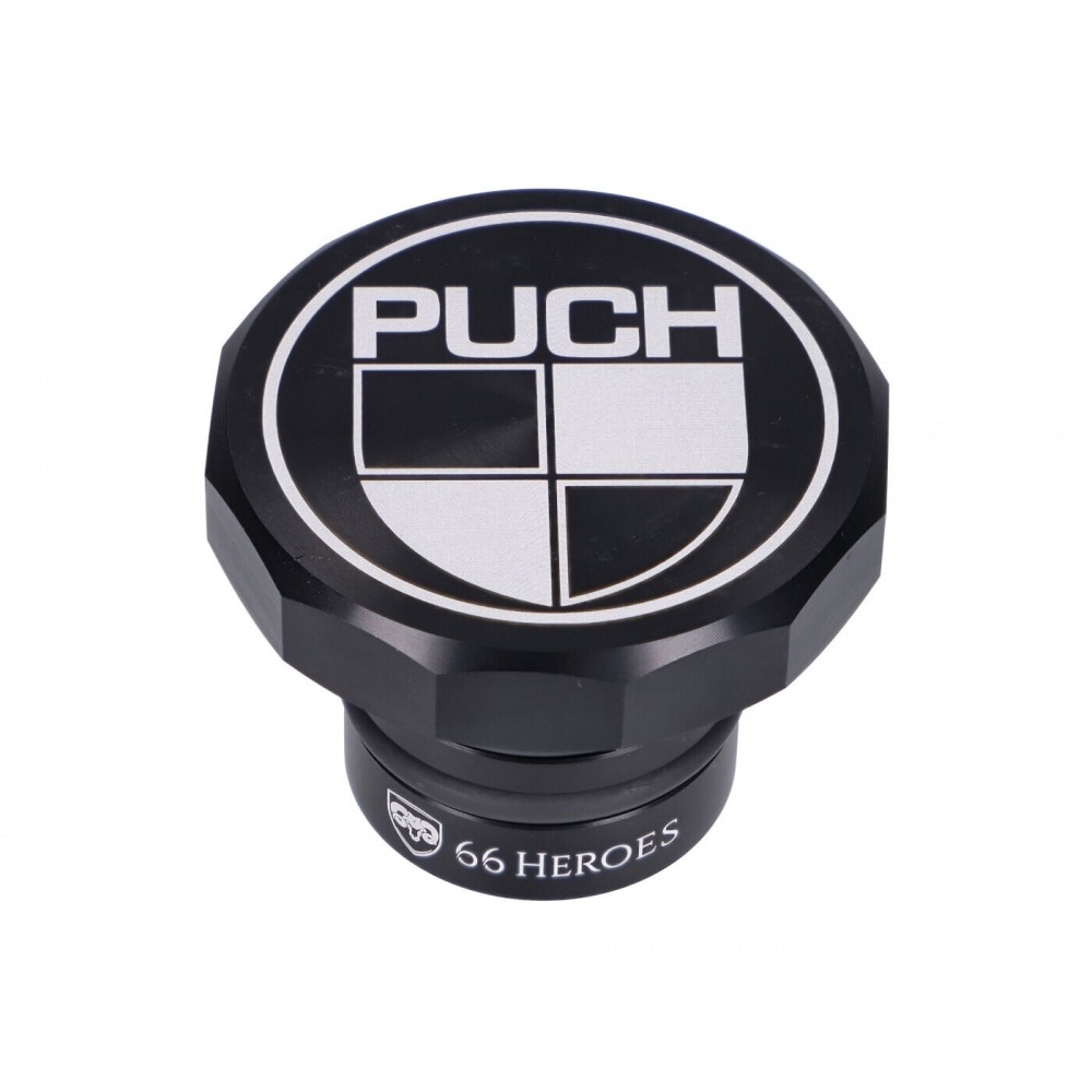 OEM quality part for your moped: Fuel Cap 66Heroes aluminium black with Puch logo Puch Maxi S / N.