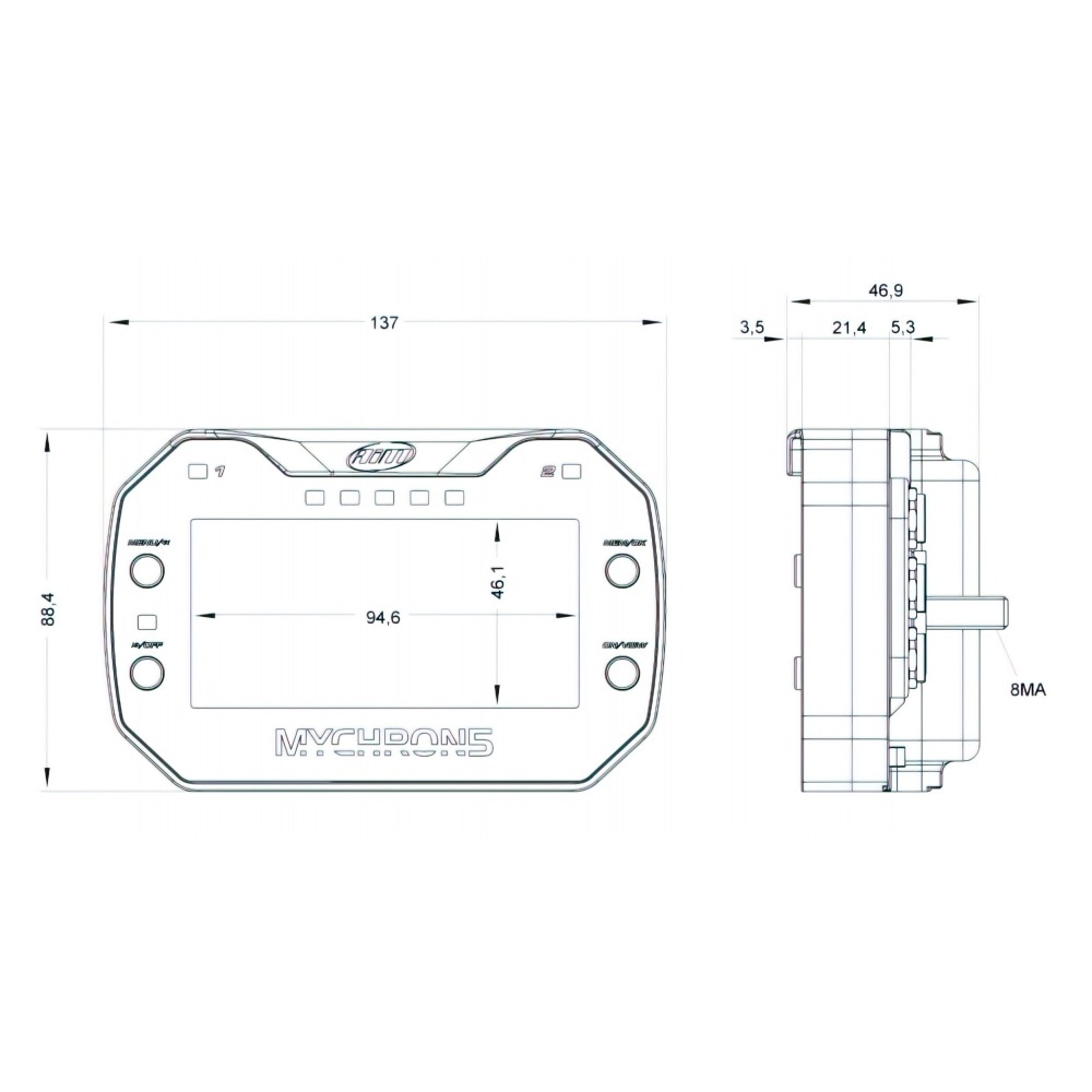 MyChron5 S mēra un parāda izplūdes gāzu temperatūru, apgriezienus, motora temperatūru, ātrumu, apļa laiku, pārnesumu; visas funkcijas var konfigurēt un viegli izvēlēties, izmantojot 4 pogas.