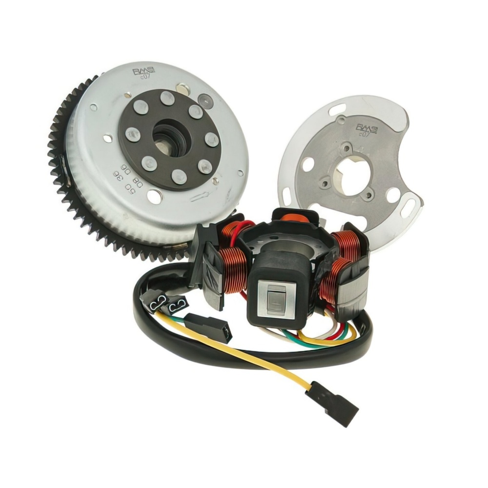 Ignition complete w. flywheel Derbi GPR / DRD50 Euro 2 after 2006 (with e-starter). Top quality replacement for damaged or worn down original parts.