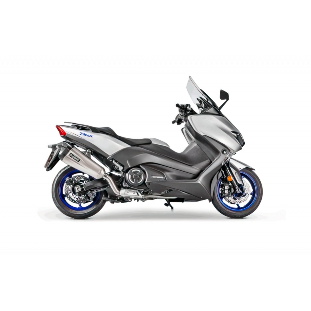 The Racing Line Titanium exhaust system is the perfect match for the sporty lines of Yamaha T-Max 530cc maxi scooters. Akrapovic is enhancing on the sleek and powerful lines of T-Max and takes it to the next level. The silencer has a unique, very modern shape; the titanium finish plus Akrapovic logo running the entire lenght of the silencer and the hand-made carbon fibre end cap result in a stunning but classy looking exhaust.
