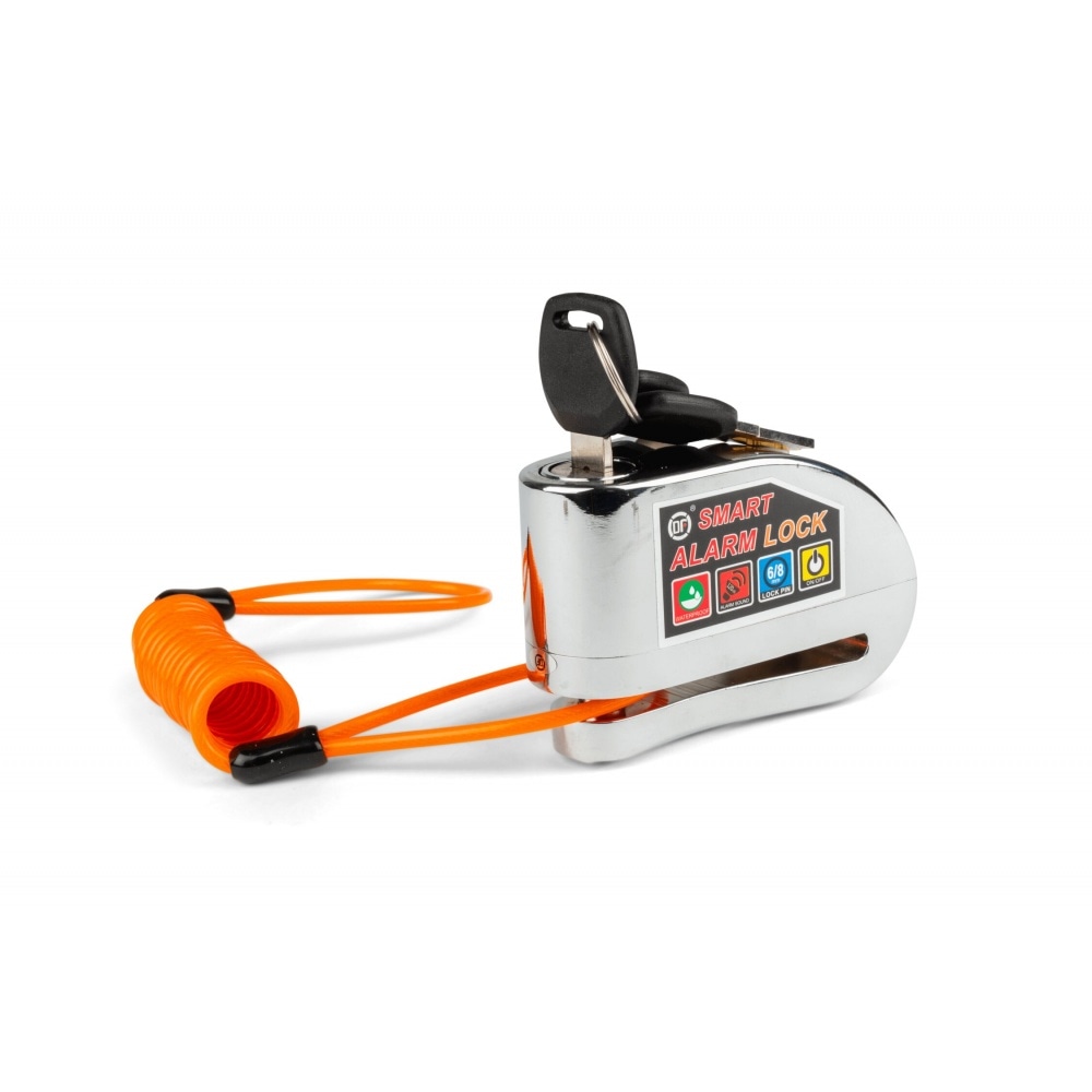 This easy-to-use lock is simply attached to the front or rear brake rotor and prevents scooters, motorcycles or mopeds from being moved without authorization. Thanks to its 110 decibel alarm, this lock triggers at the slightest suspicious movement, providing increased theft protection.