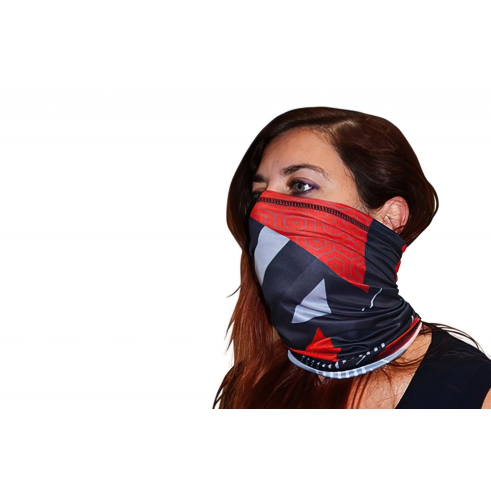 For the cold season: Neck Tube Black-Red Shape. Neck warmers are very practical especially for helmet wearers – in contrast to a scarf that is open on both sides, a neck tube cannot get caught or obscure the view. The neck tube is made of a comfy soft material, it sits snug on your neck without constricting it and can also be used to cover the lower half of the face and the nose.