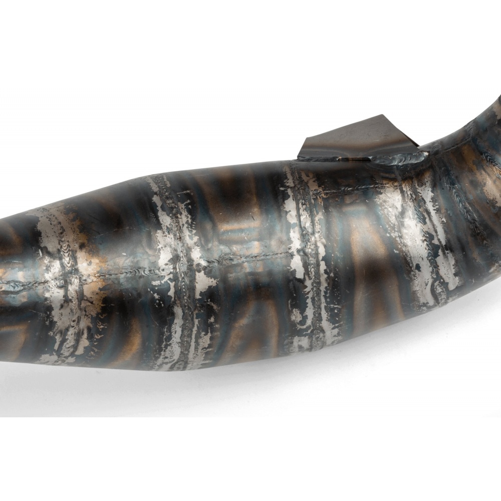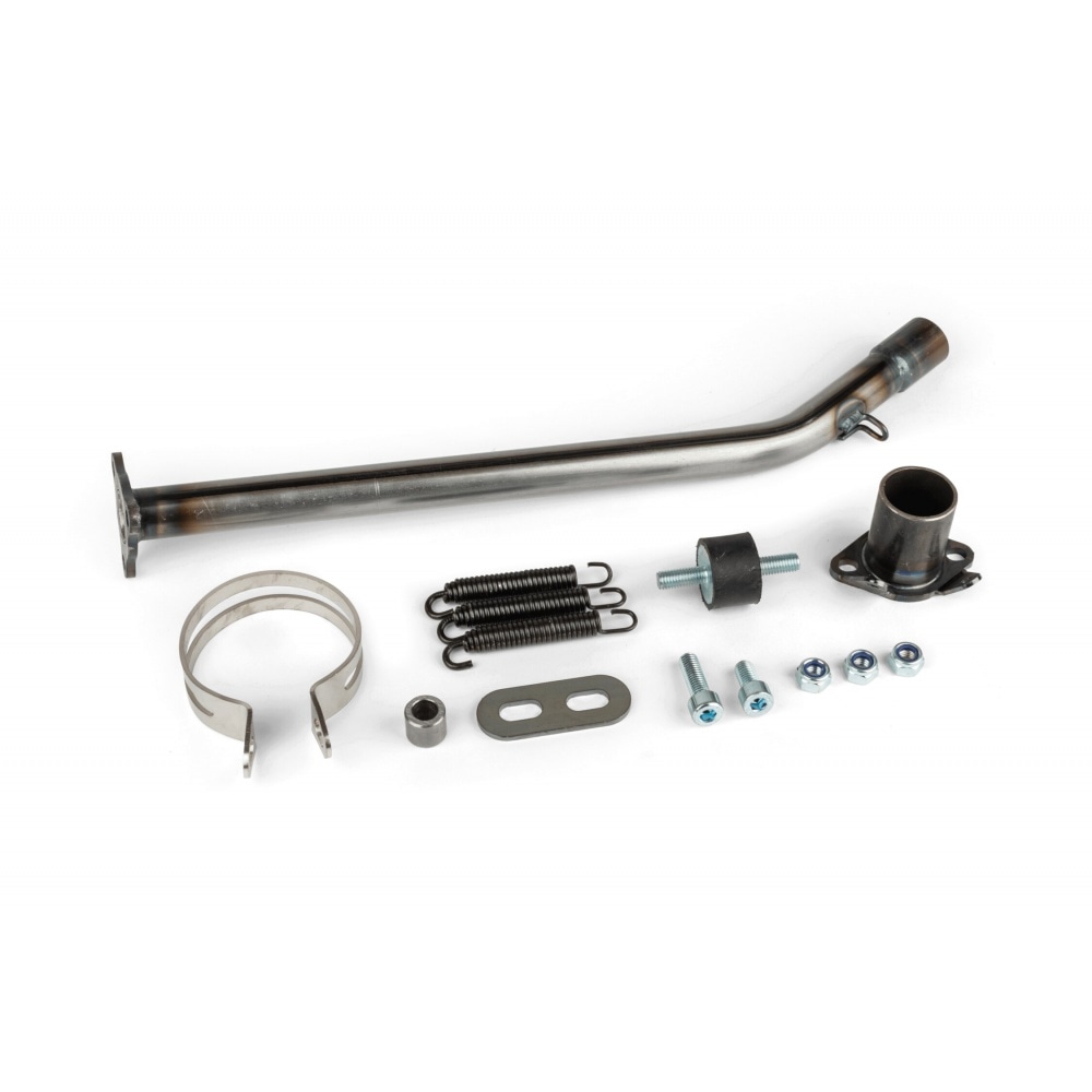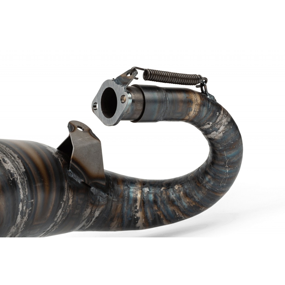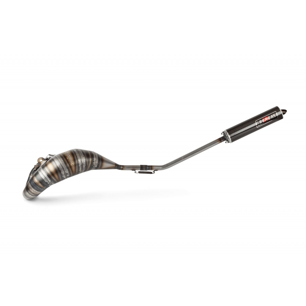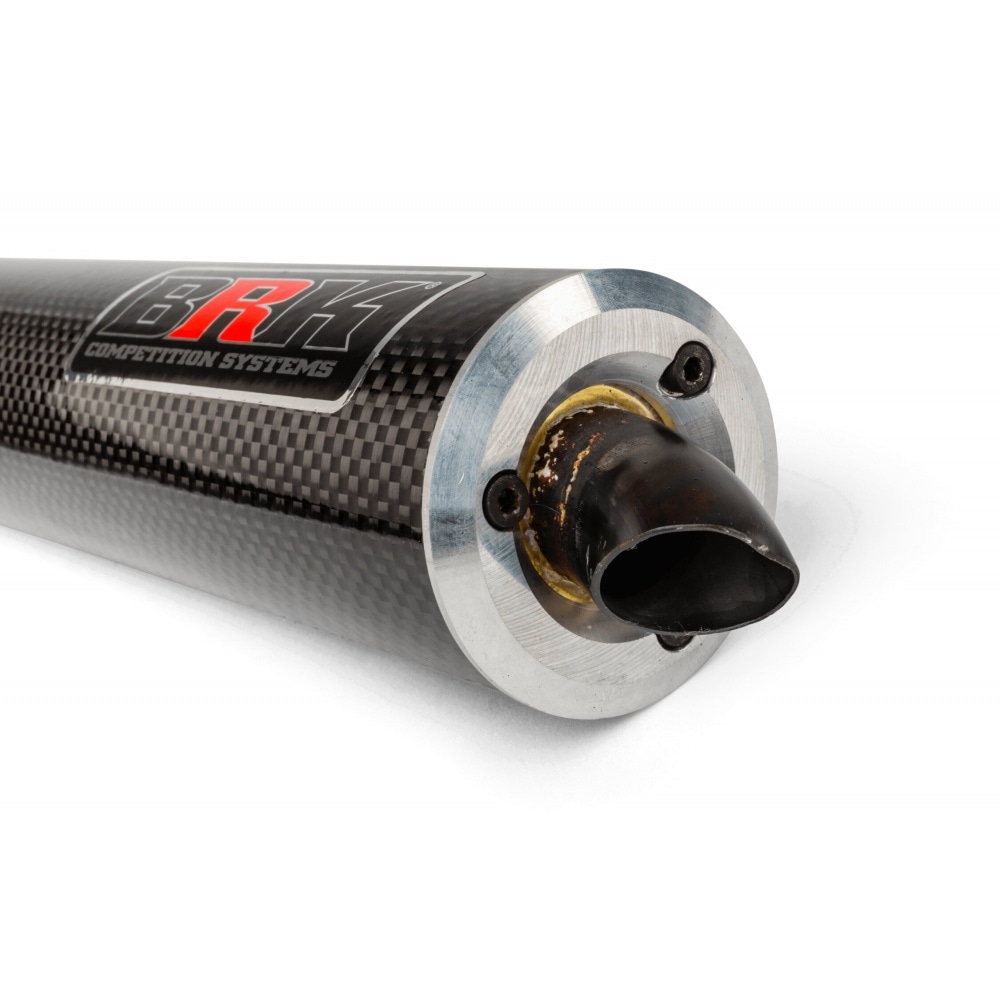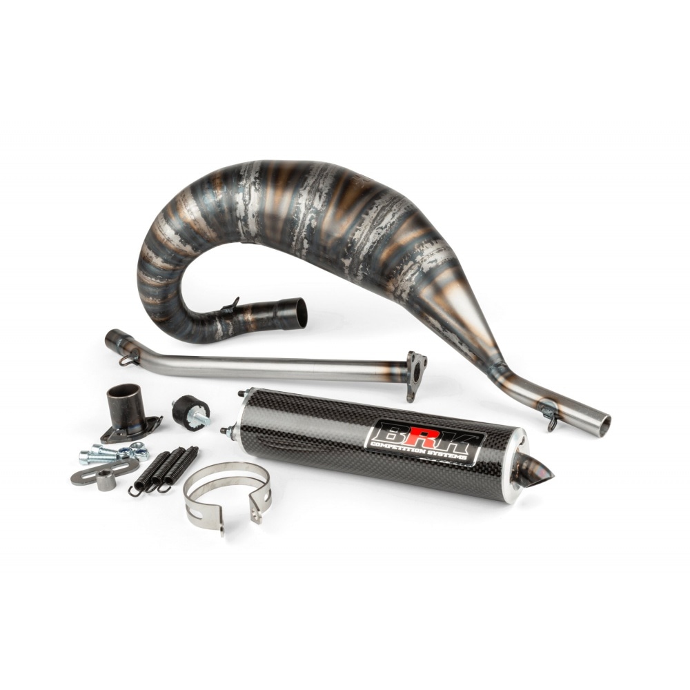 If you are looking for a torque-boosting exhaust for your racing / tuning cylinder, the Barikit Cross might just be it. The BRK Cross 80 / 90cc Derbi DRD is a high-mount cross exhaust for powerful cylinders, with outstanding performance equaling that of other top quality exhausts. The exhausts targets the high to very high rpms. Workmanship is excellent, with precisely machined parts and clean welding seams. The classy looking carbon / Kevlar silencer adds to the overall high-end appearance of this HQ exhaust.