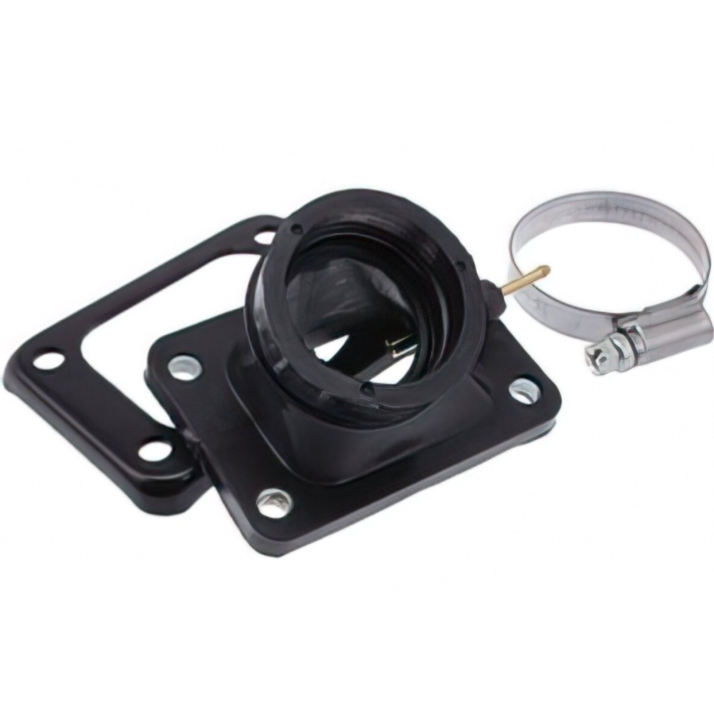 Rubber mount intake manifold with vacuum port for Minarelli AM6 by Spanish manufacturer Barikit. For 28mm Keihin PWK carburetors.