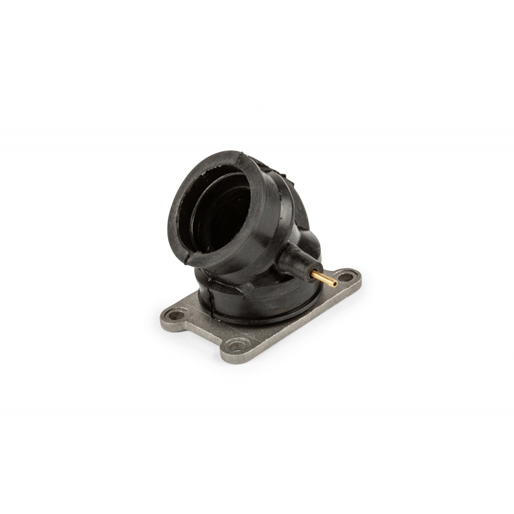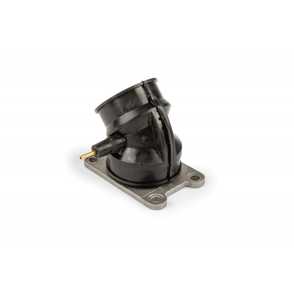Adjustable intake manifold with vacuum port for Minarelli AM6 by Spanish manufacturer Barikit. For 28mm carburetors. Gasket and clamps are included.
