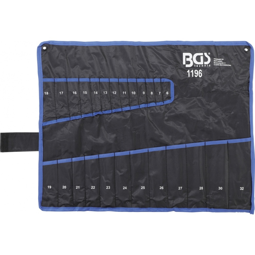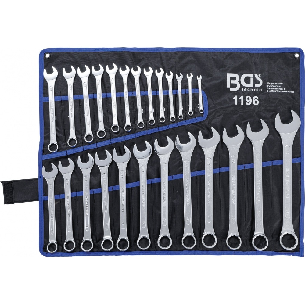 High-quality combination wrench set from BGS in handy easy-to-carry roll.