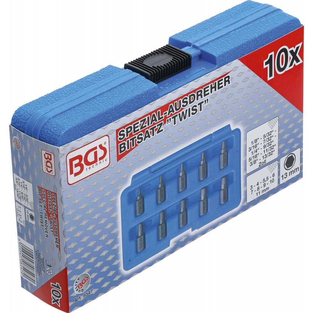 - extractor bits with hexagon drive in following sizes 3 – 4 – 5.5 – 6 – 7 – 8 – 9 – 10 – 11 mm