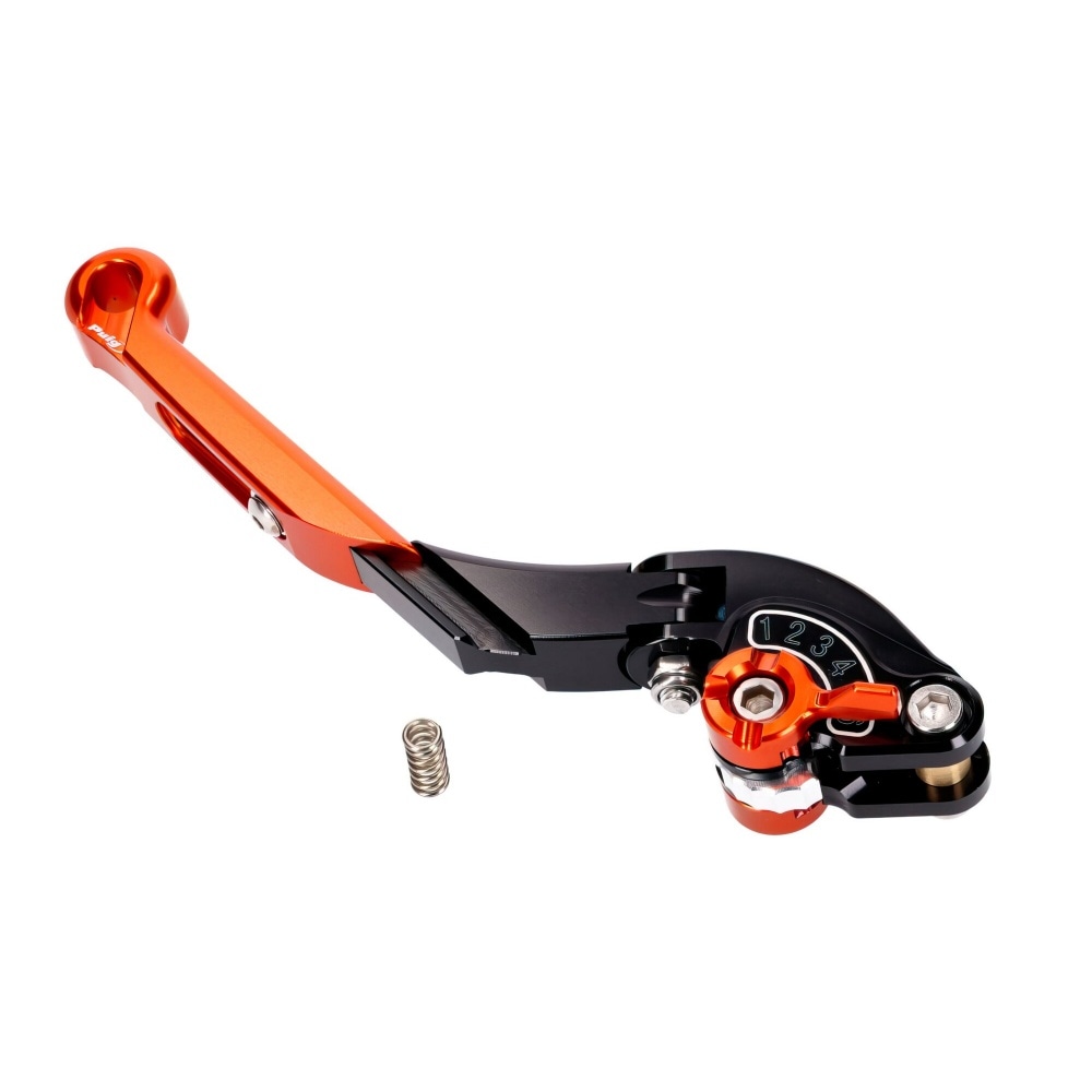 Brake / Clutch Lever rear Puig 2.0 adjustable folding extendable orange / black. CNC-machined clutch / brake lever (rear brake) from Puig.