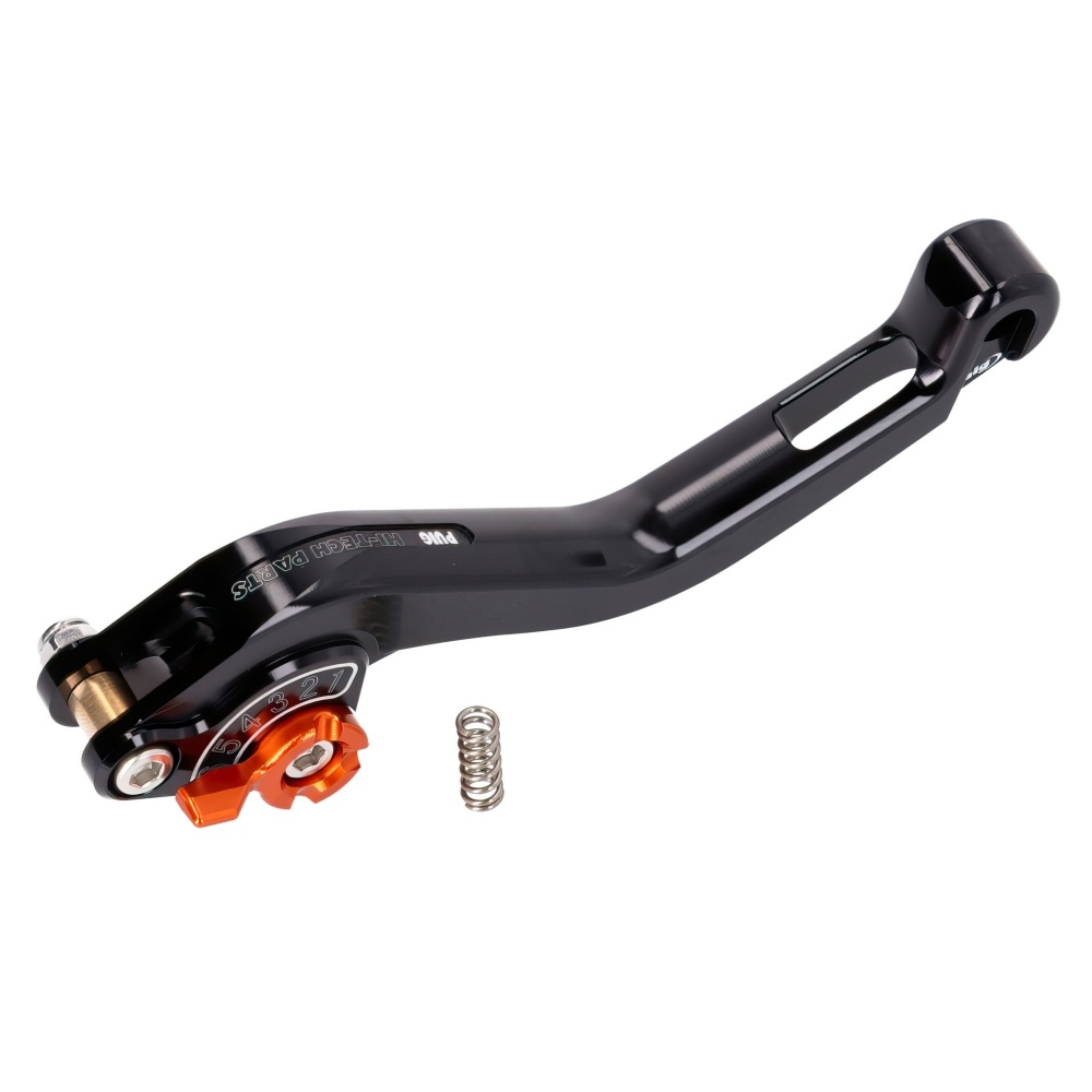 Bremžu svira priekšējā Puig 2.0 regulējama īsa melna / oranža. CNC apstrādāta bremžu svira (priekšējās bremzes) no Puig.