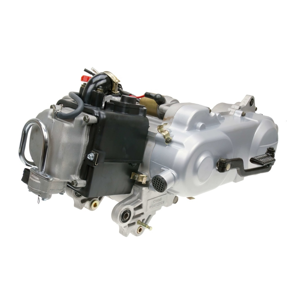 Dzinējs Komplektā 12" ritenis ar sekundāro gaisa sistēmu / īso vārpstu 139QMB - komplektēts dzinējs Ķīnā ražotiem 4 taktu mopēdiem ar 12 collu riteņiem un trumuļa bremzēm.