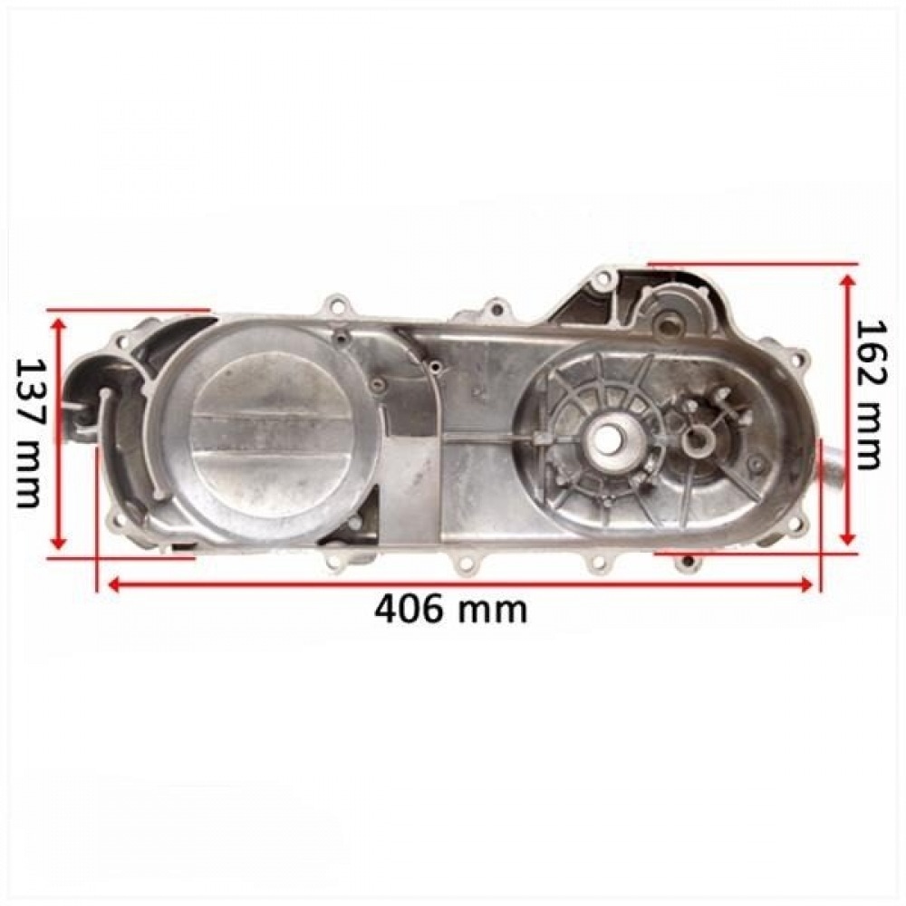 Transmission cover for all scooters with 12–13 inch wheels or bigger and GY6 4-stroke 139QMB engine. This version usually has a drive belt with a length of 788mm. Comes in silver colour! Scope of delivery as pictured.