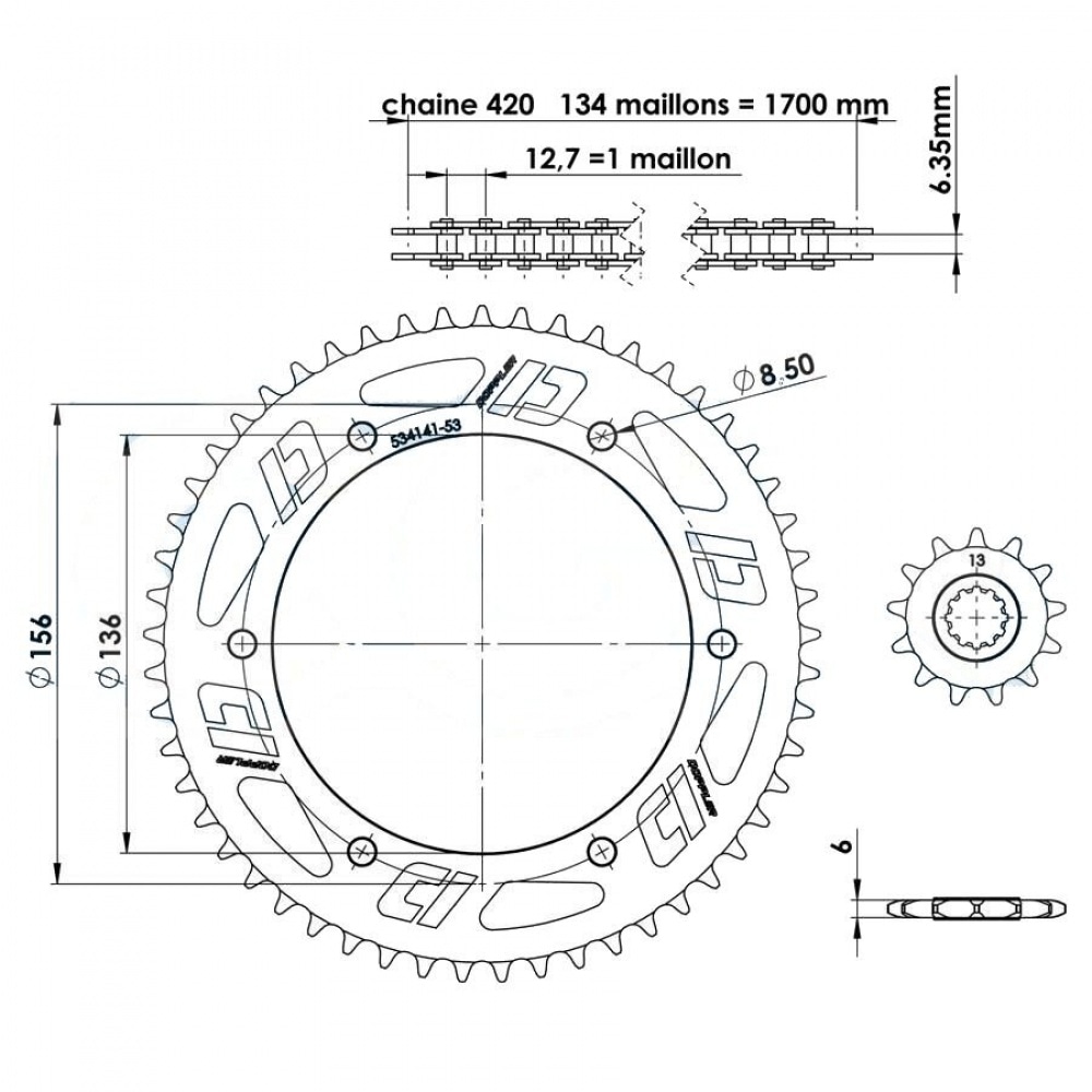 - Sprocket mounting: 6 holes