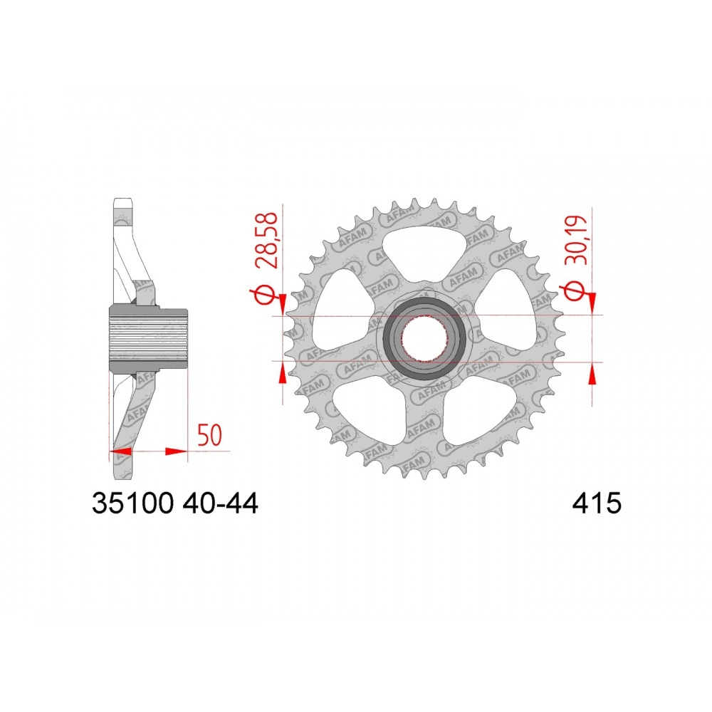 - rear sprocket hole d.: 28mm