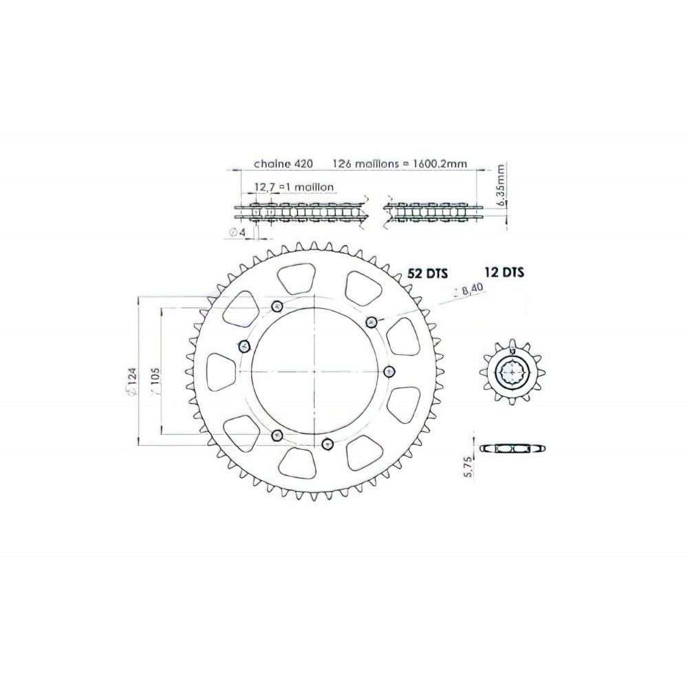 Ķēdes komplekts AFAM 12x52 - 420 Rieju MRT / Yamaha DT