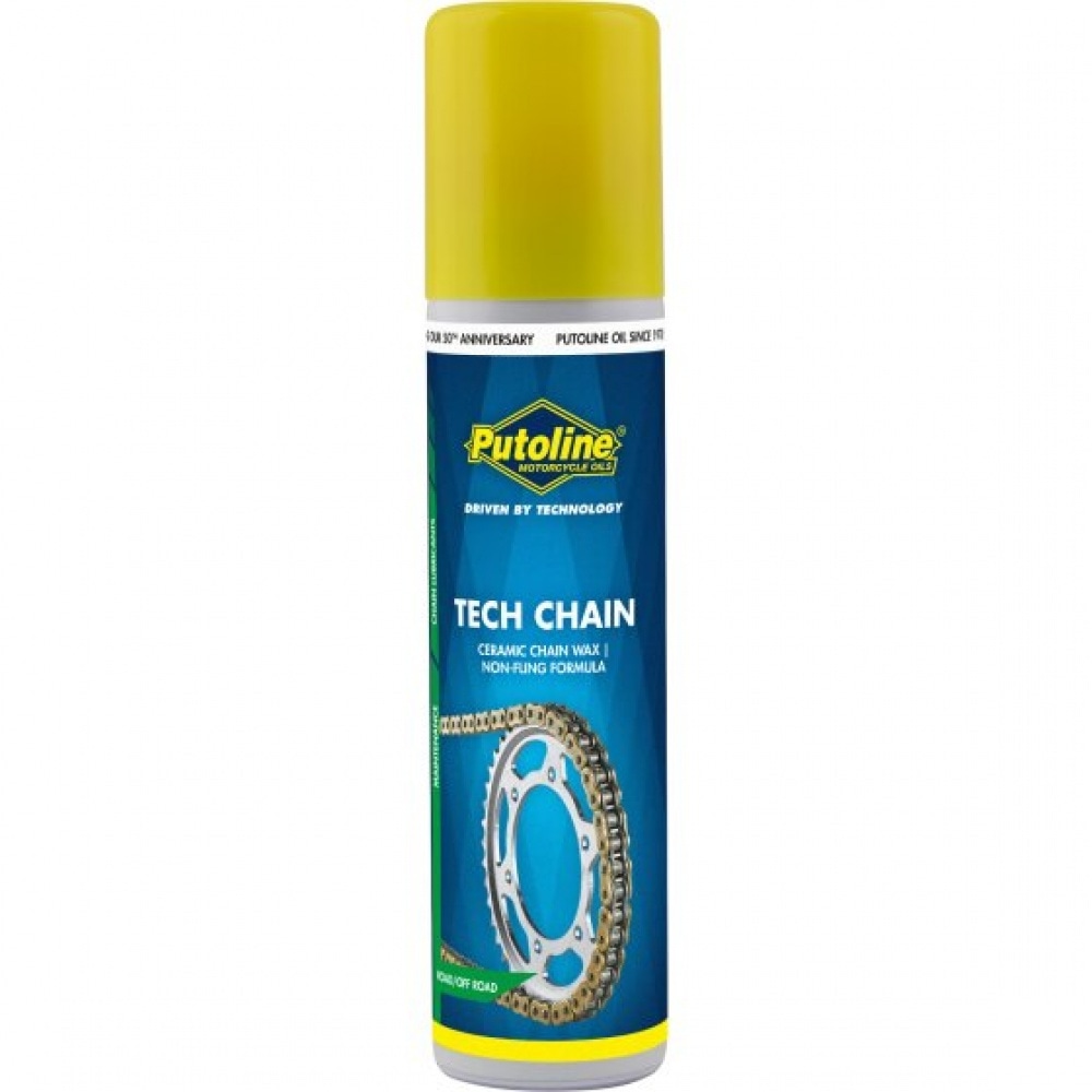 Putoline Tech Chain (Ceramic Wax) is a modern premium quality chain lubricant. The product uses a unique wax formula in combination with refined additives, including PTFE. Tech Chain offers optimal chain protection under all operating conditions. Suitable for sport and professional use on O-ring and MX chains.