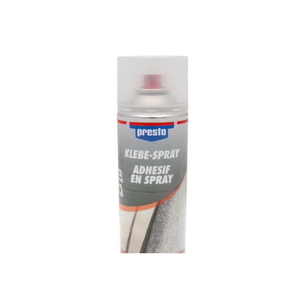 Spray adhesive by Presto, 400ml, multi-purpose, easy-to-use aerosol adhesive for permanent and temporary bonding of materials. The adjustable valve allows for choosing different spray rates. It is versatile and bonds a wide range of materials – textile, leather, metal, plastic, and many more.