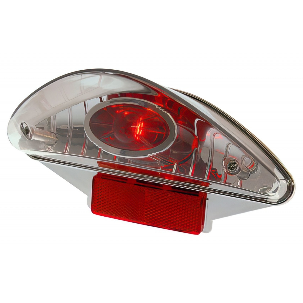 Hot stuff: clear lens tail light with beautiful reflector. Comes with bulb and everything, just wire up and go.