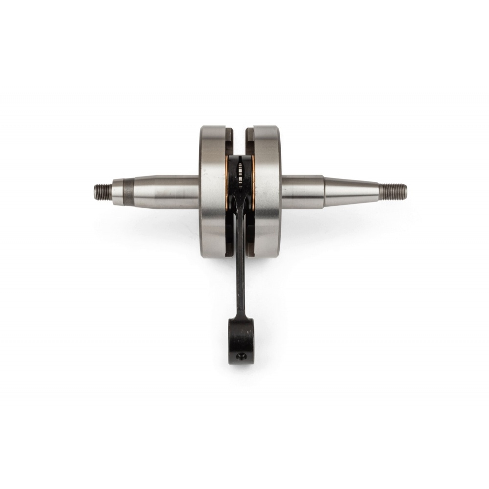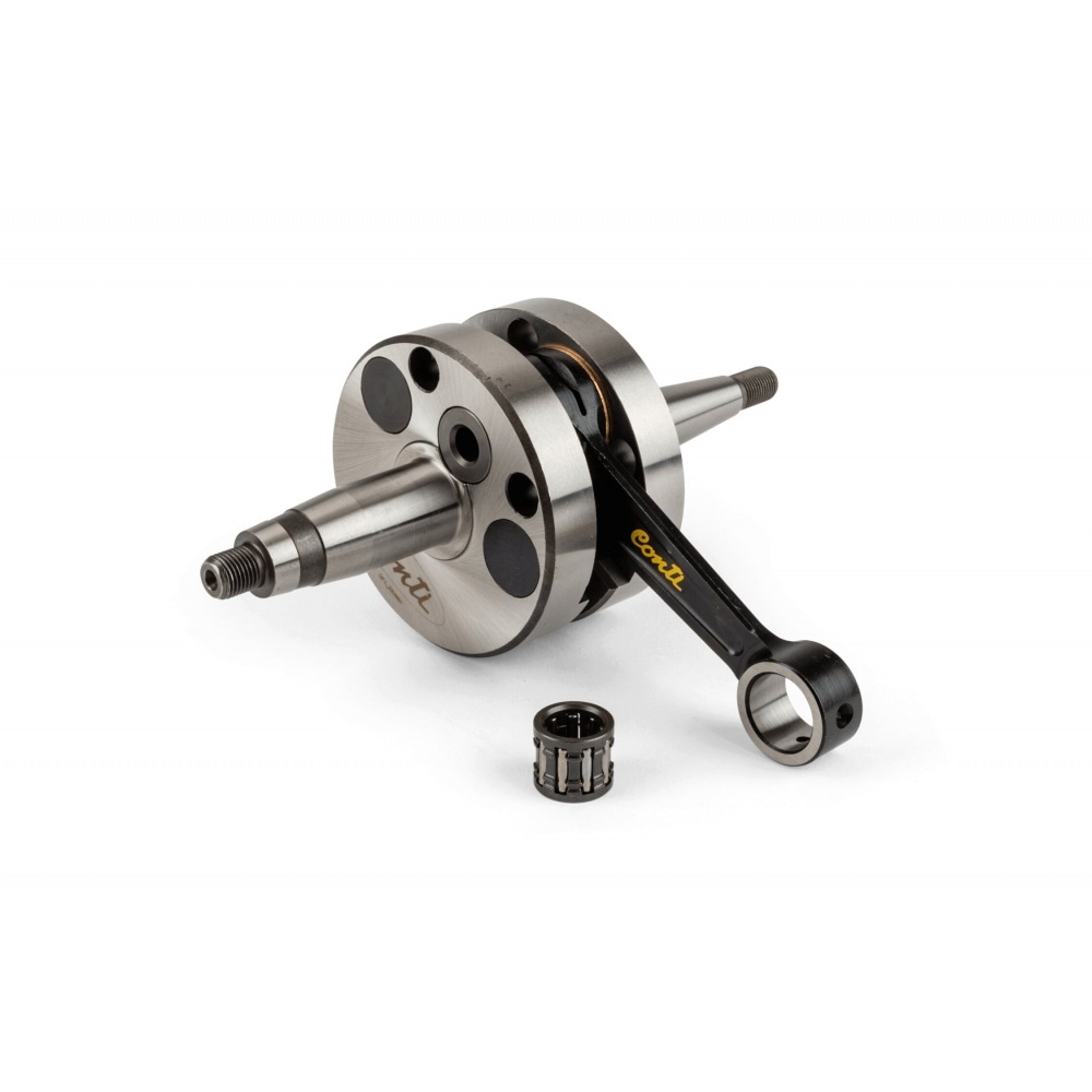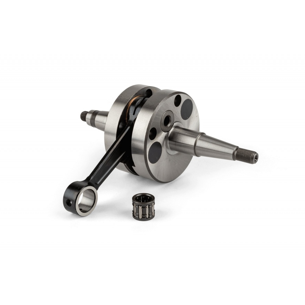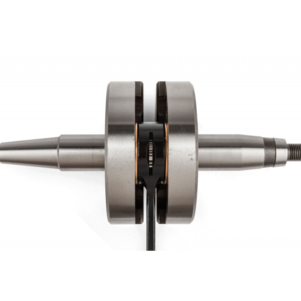 Crankshaft Racing Conti for Derbi Euro 3 / Euro 4. This is a Racing full circle crankshaft with anodized aluminium counterweights. The lightweight aluminium inserts reduce dead volume in the lower engine area while providing maximum balance and good inertia.