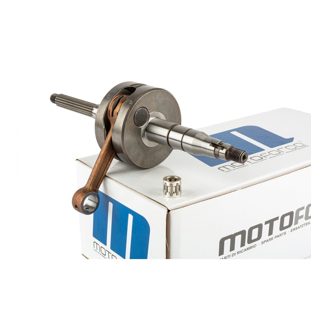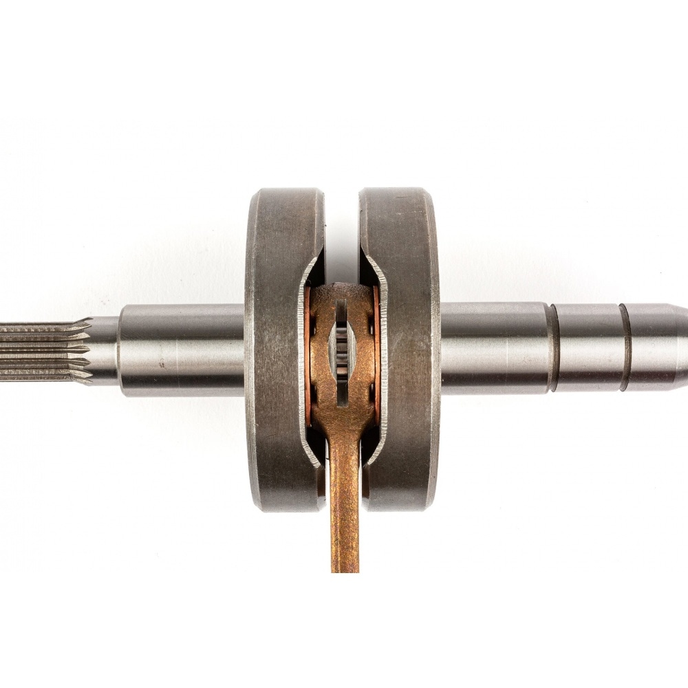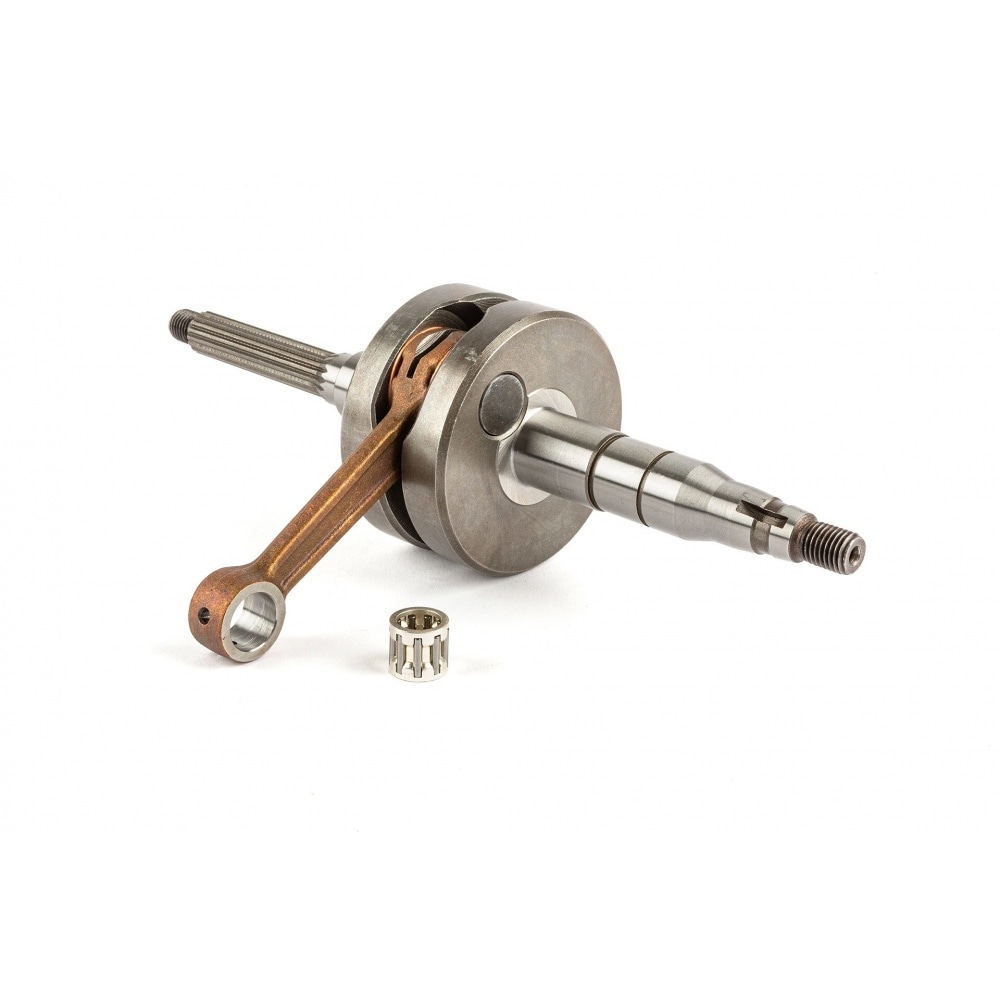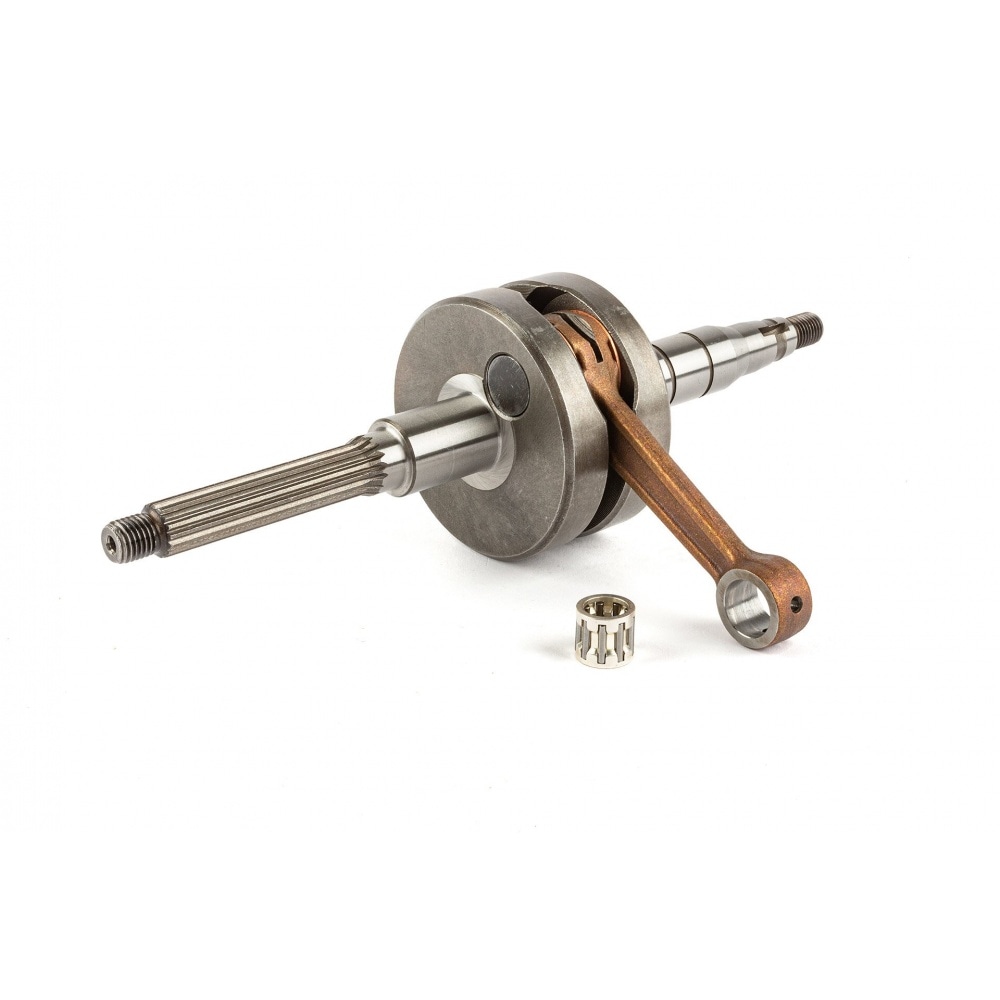 Crankshaft MBK Booster / Stunt, reinforced replacement crankshaft with silver alloy bearing.Primary compression is the same as with OEM part. It has a polished connecting rod to avoid stress risers. Suitable up to 12,000rpm.
