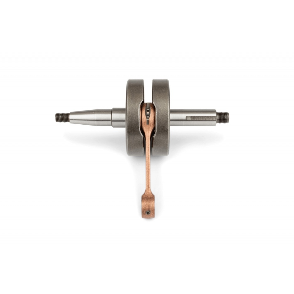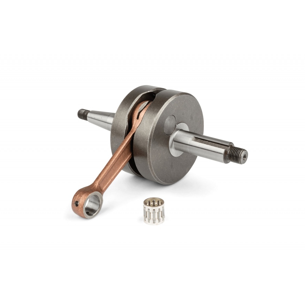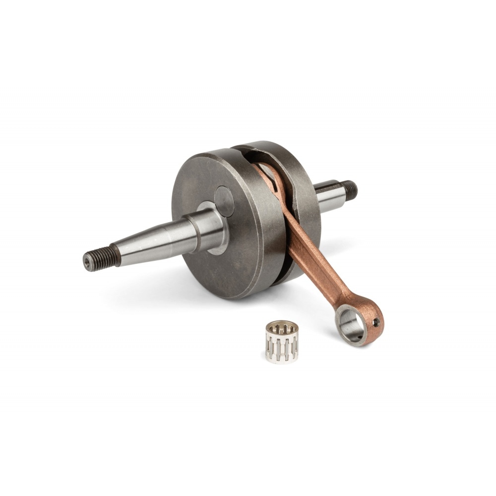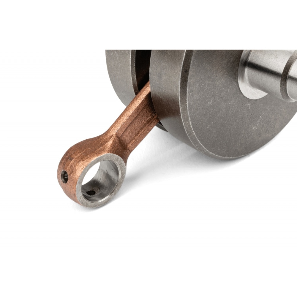Reinforced Crankshaft Evolution with 20mm spline for Minarelli AM6 engines, available at a really affordable price. It is a full circle crankshaft with polished connecting rod to avoid stress risers and silver-plated small end bearing – materials and features rarely found on crankshafts in that price range, definitely a steal!