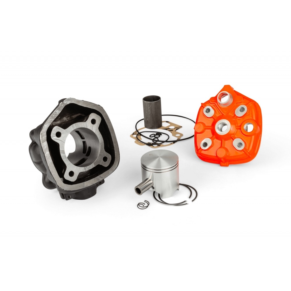 - Design: The cast iron cylinder has 7 transfer ports, an improved exhaust port, Ø50.54 mm bore and a piston with 13 mm piston pin and 2 piston rings.