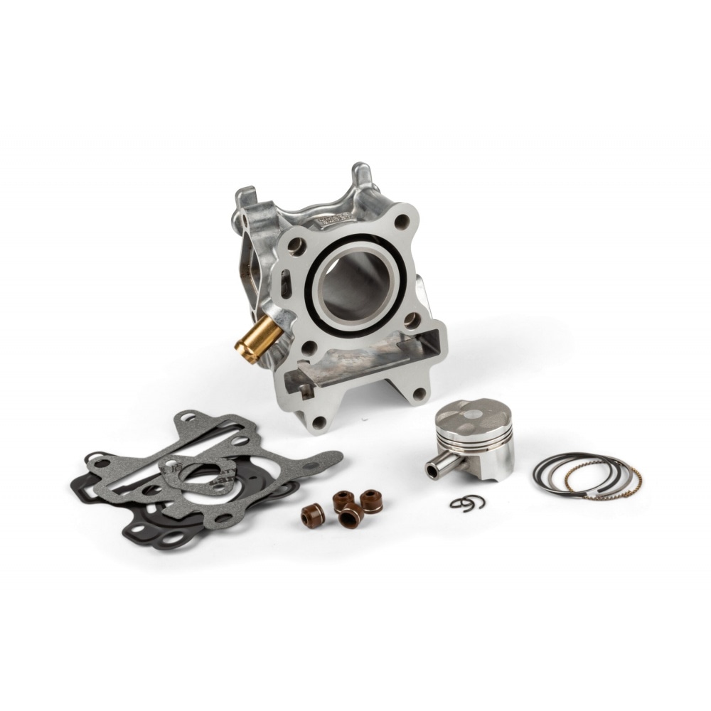 Top quality standard exhaust by Teknix for Minarelli 4-stroke engines, affordable OEM quality replacement for damaged original. The cylinder kit comes with piston and gasket kit. A cylinder head ist NOT included, please use the original head or order the matching head separately.