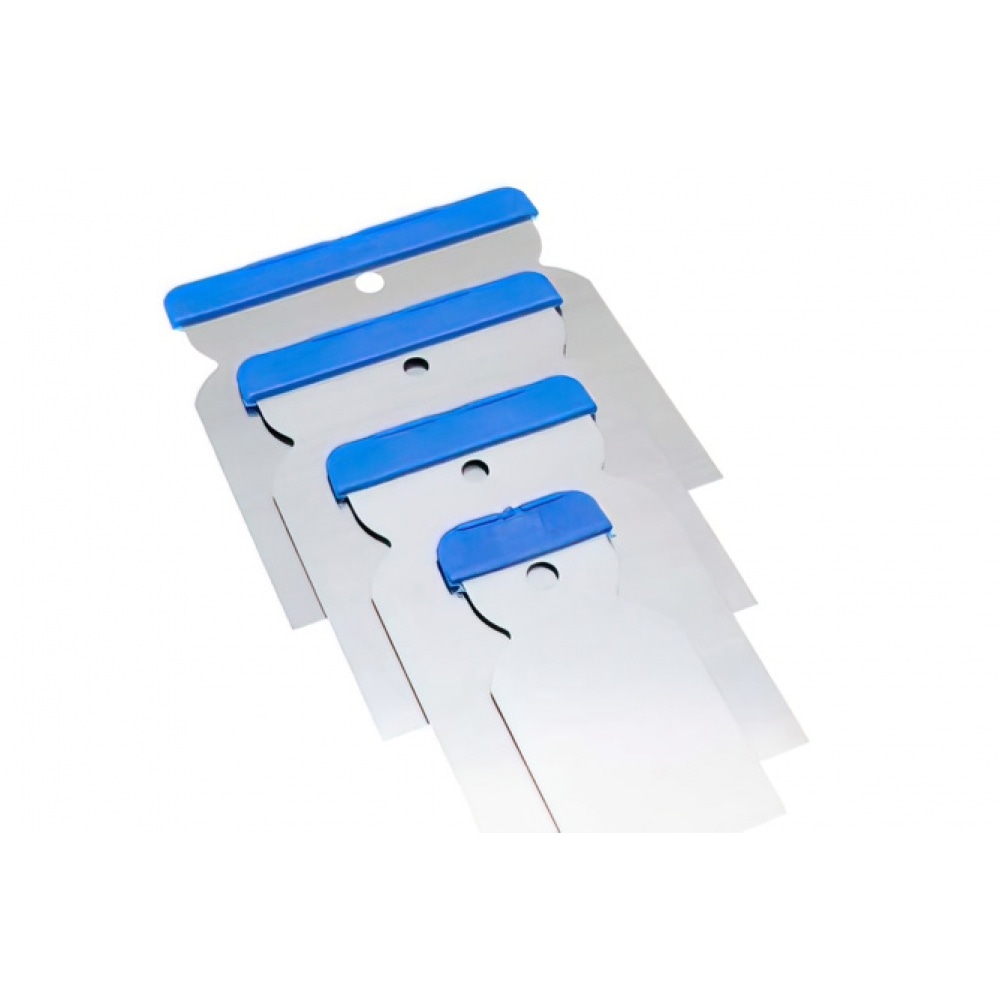 Spatula Blades Presto, metal, 4 pcs. The blades are made of hardened, flexible steel with acid-resistant holders. Small plastic spatulas in 4 sizes, for filling, smoothing and spreading materials. Can be used for all kinds of applications.