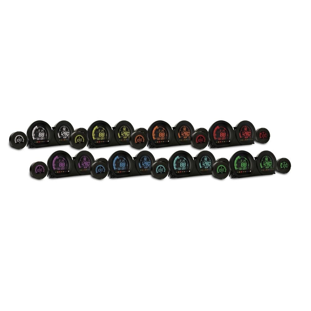 The 4-piece HD-06 set includes a 4" speedometer, a 4" tachometer with gear indicator, a 2" oil temperature gauge and a 2" fuel level indicator.