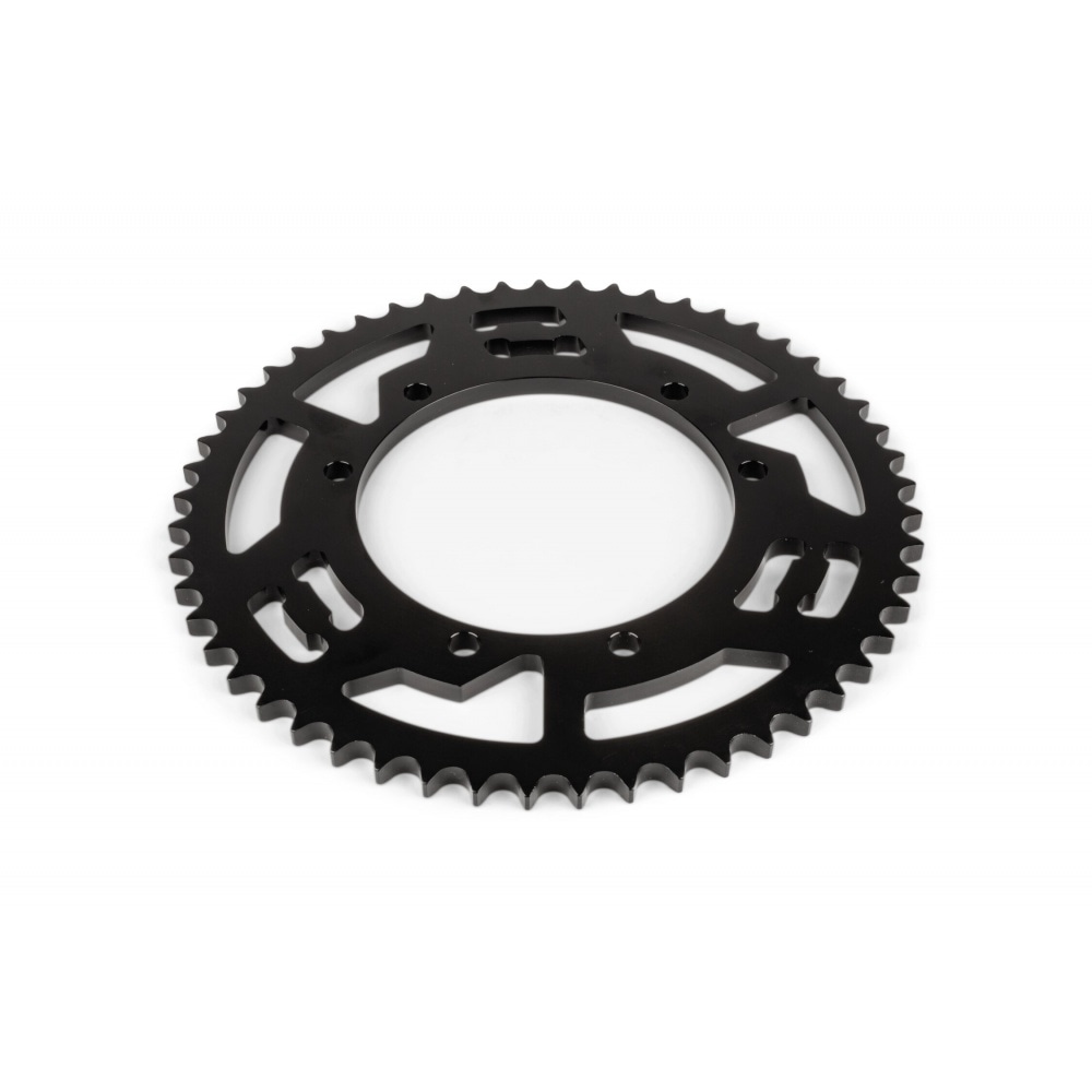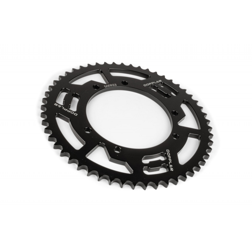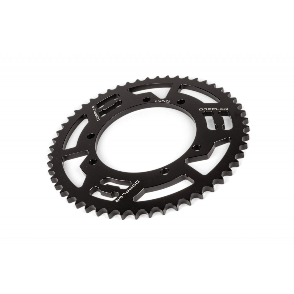 You want your supermoto to perform better and look stylish while doing so? This Rear Sprocket 53 teeth – 428 Doppler aluminium CNC black Sherco 50 Enduro / SM is a rear sprocket CNC-cut from lightweight aluminium with a classy looking black coat. Less weight translates into better acceleration and improved overall performance and acceleration so replacing the original with this ultra-light aluminium sprocket might be interesting for drag bike owners, too. And that’s not all – the black coating will add to the custom look of your bike.