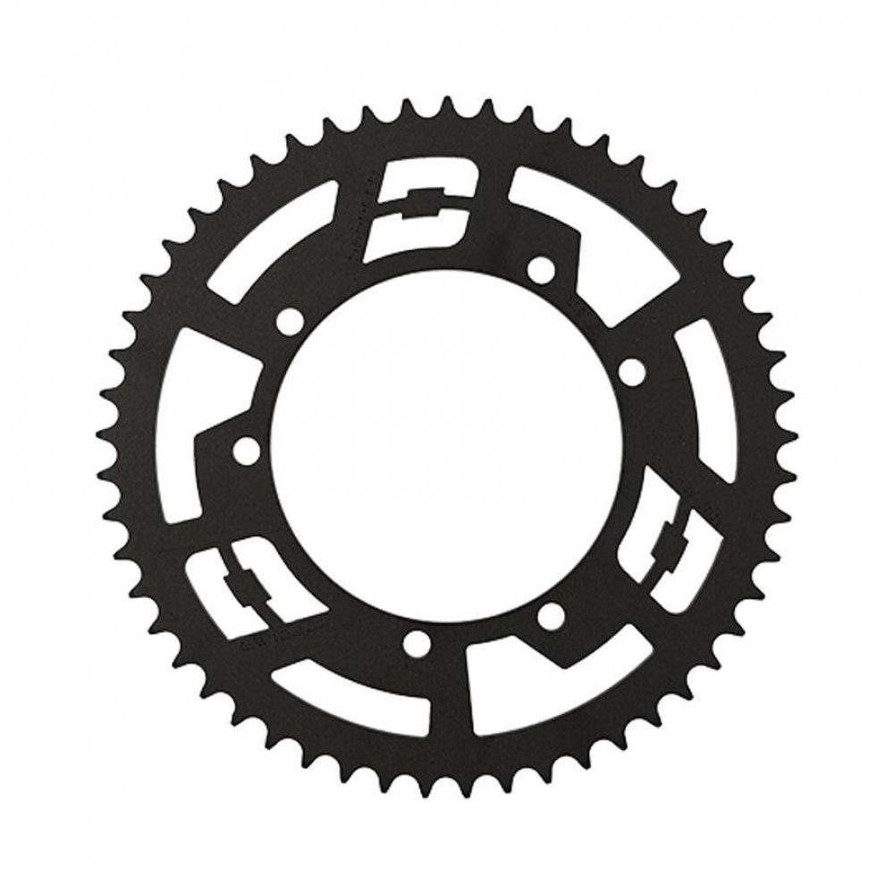 Improve performance and add some custom touch to your supermoto – Rear Sprocket 53 teeth – 428 Doppler steel black Sherco 50 Enduro / SM. The sprocket is made of sturdy steel and given a stylish black coating. Sprockets made of steel wear less quickly than aluminum sprockets, the risk of one or more teeth breaking off is also reduced, so this top quality part will last you a long time.