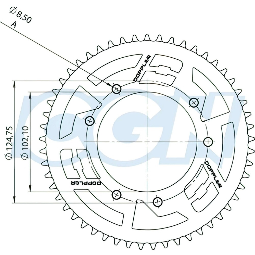 High quality sprockets by Doppler. Ideal for replacing the original and also for customizing your wheels. The sprocket has 53 teeth, 6 holes and a diameter of 102mm; it is suitable for 420 type chains. Please check the original sprocket before ordering.