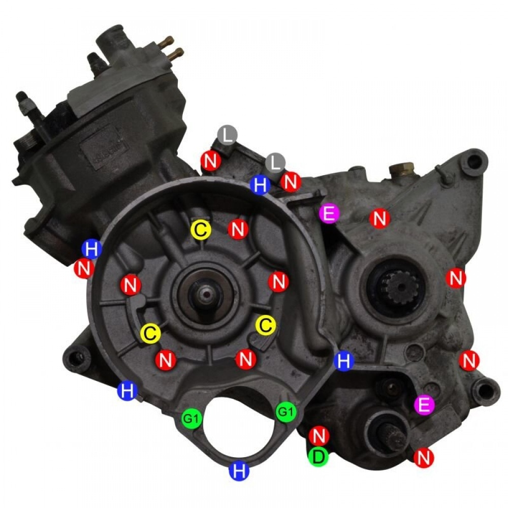 The AM6 Easyboost bolt set contains all crankcase bolts for 50cc motorcycles with AM6 engine such as Yamaha TZR, DT, MBK Xlimit, Xpower, Aprilia RS, Peugeot XP6-XPS, Beta, Rieju, Sherco and many others.