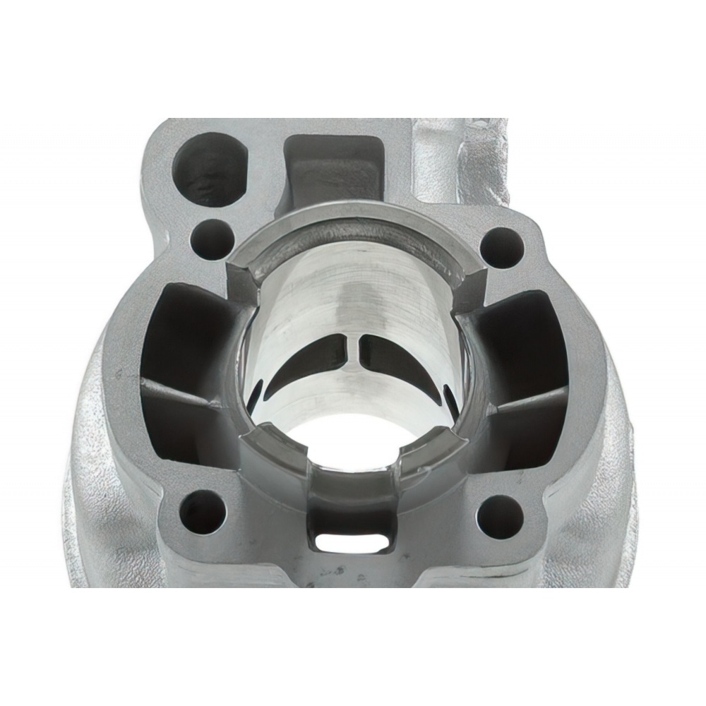 This 50cc "Racing" cylinder is mostly identical to the T6 series. It is made of Nikasil-plated aluminium, with a two-ring piston and a high-compression cylinder head. The exhaust port is "divided" to improve port flow at high rpm range.