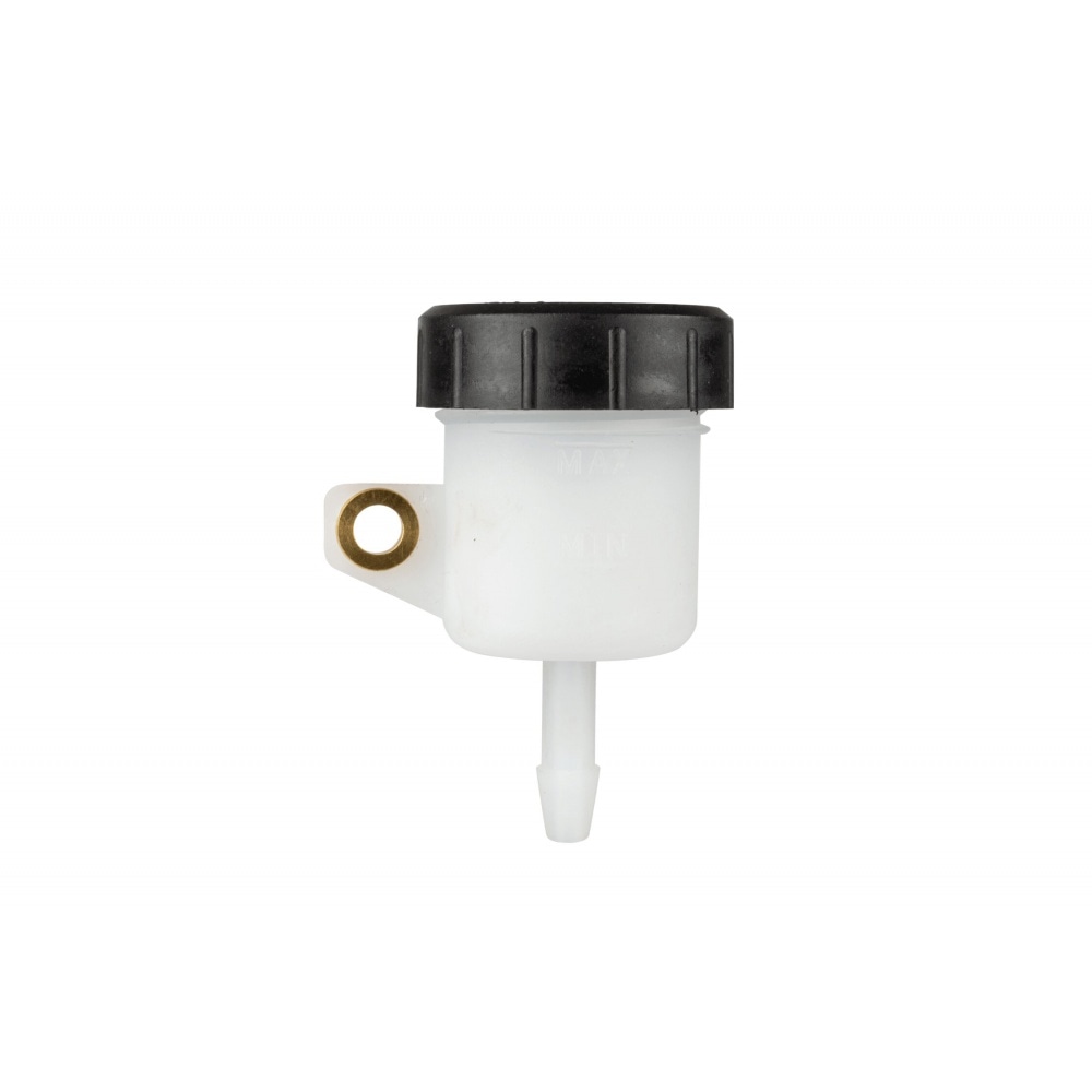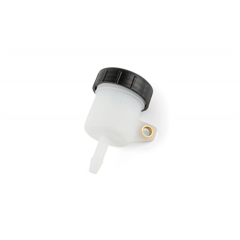 Brake Fluid Reservoir, round, universal, as replacement for broken or if you simply don't have one on your scooter. Brake systems with large external reservoir do look cool, but what's more important is that brake performance is improved, especially in combination with a 4-piston caliper.