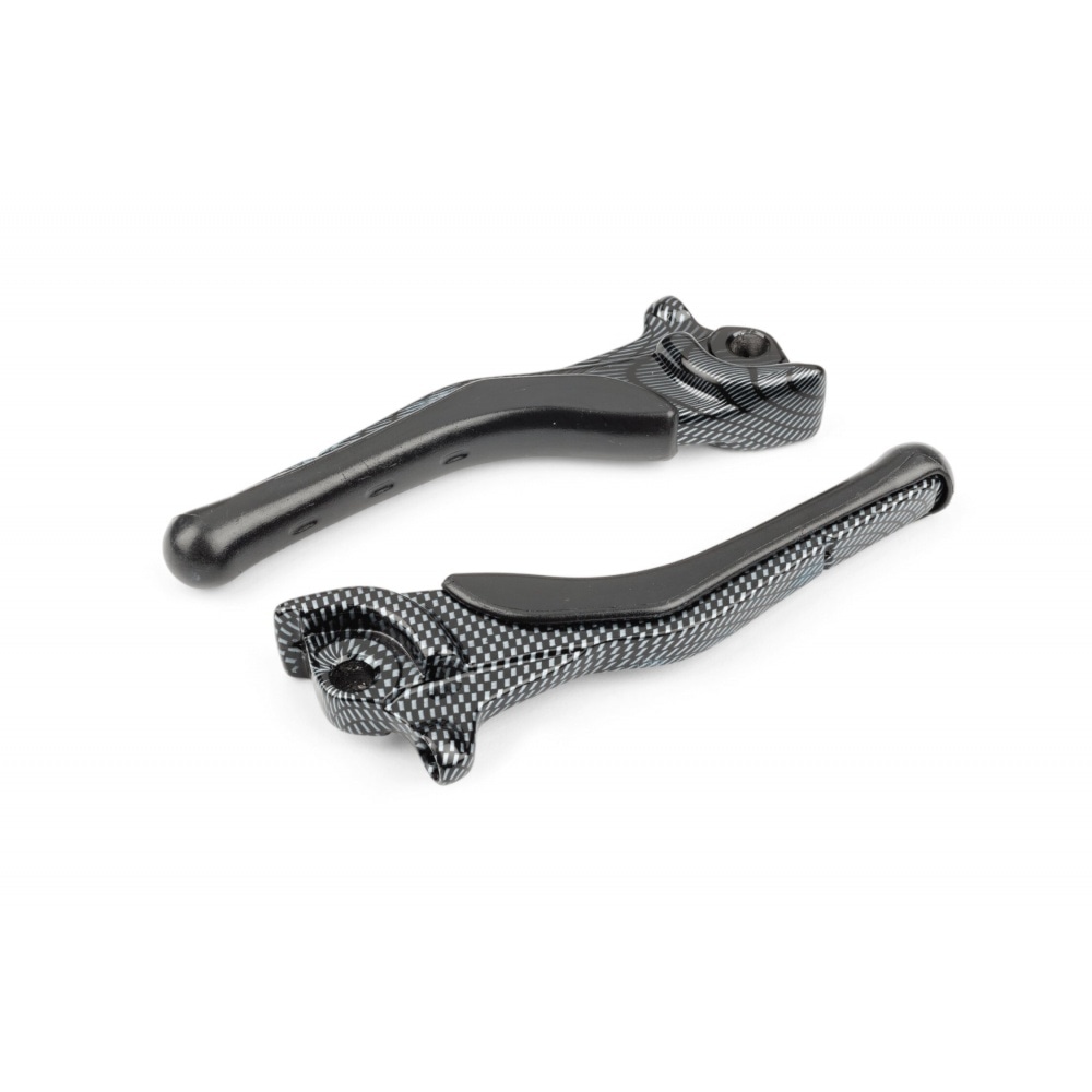 To give your scooter a new look or repair your braking system, we offer this pair of carbon-look brake levers, specially designed for pre-2013 MBK Nitro and Yamaha Aerox.
