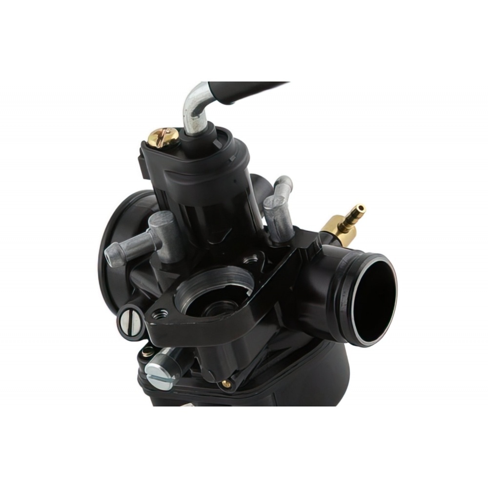 Low-priced 17.5mm carburetor PHVA, here as "Black Edition", simply meaning that it is painted black. Replacement parts such as jets and chokes are available for all PHVA carbs. If you want to mount this carburetor on a Peugeot, you'll have to use one of these adapters: A140600 or MF16.30500.