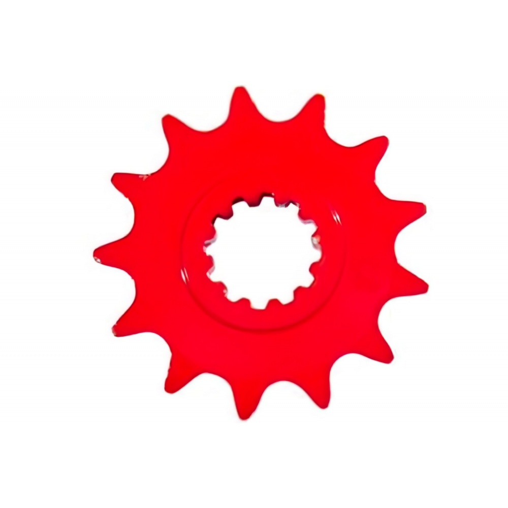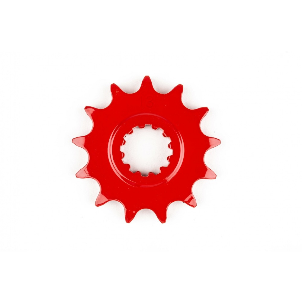 Replace the sprockets on your moped and add some customizing while you're at it: Front Sprocket 420 red Minarelli AM6. The sprockets are painted with a very wear-resistant paint, they're fully functioning, top quality sprockets. Eye-catching replacement for original gear, or for changing the gear ratio of the transmission. Changing the gear ration of the transmission can have a powerful impact on acceleration and also on overall performance and top speed.