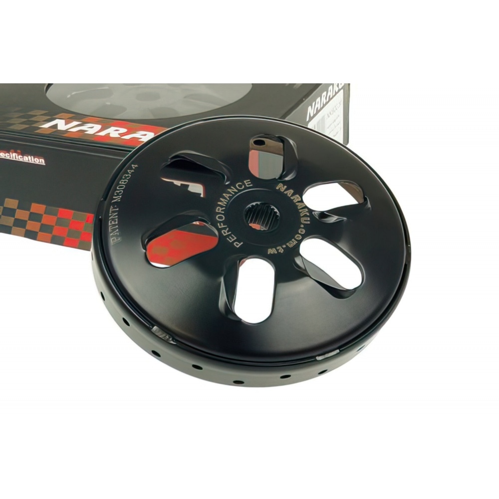 High Performance clutch bell from NARAKU. The exterior fins of the patented R-Vent system lead fresh air into the clutch. This keeps the temperature of the clutch unit down, which prevents wear; results are excellent friction coefficients and sufficient grip inside the bell. The friction material is transported off through holes in the side, which prevents additional traction losses. Furthermore the R-Vent bell is equipped with a shrunk-on outer ring for added strength. This prevents deformation in this critical area of the bell. And despite of being reinforced, it still has low weight for excellent acceleration characteristics. An excellent clutch bell with an unbeatable price-performance ratio.