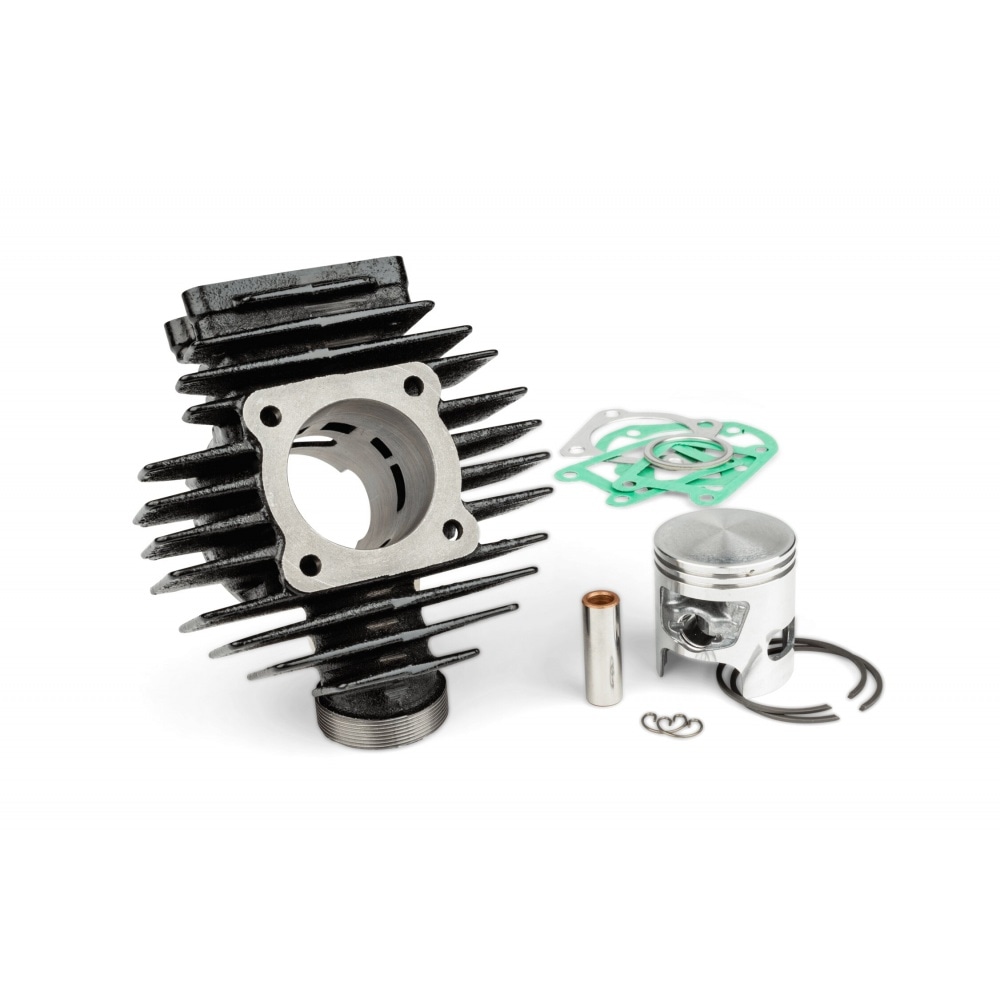 The high quality cast iron cylinder comes with a 45mm 2-ring piston. 45mm -> just under 65ccm displacement, which results in much better torque than the original cylinder. The kit is also very reliable and durable and does not require any extra efforts for installation or maintenance.