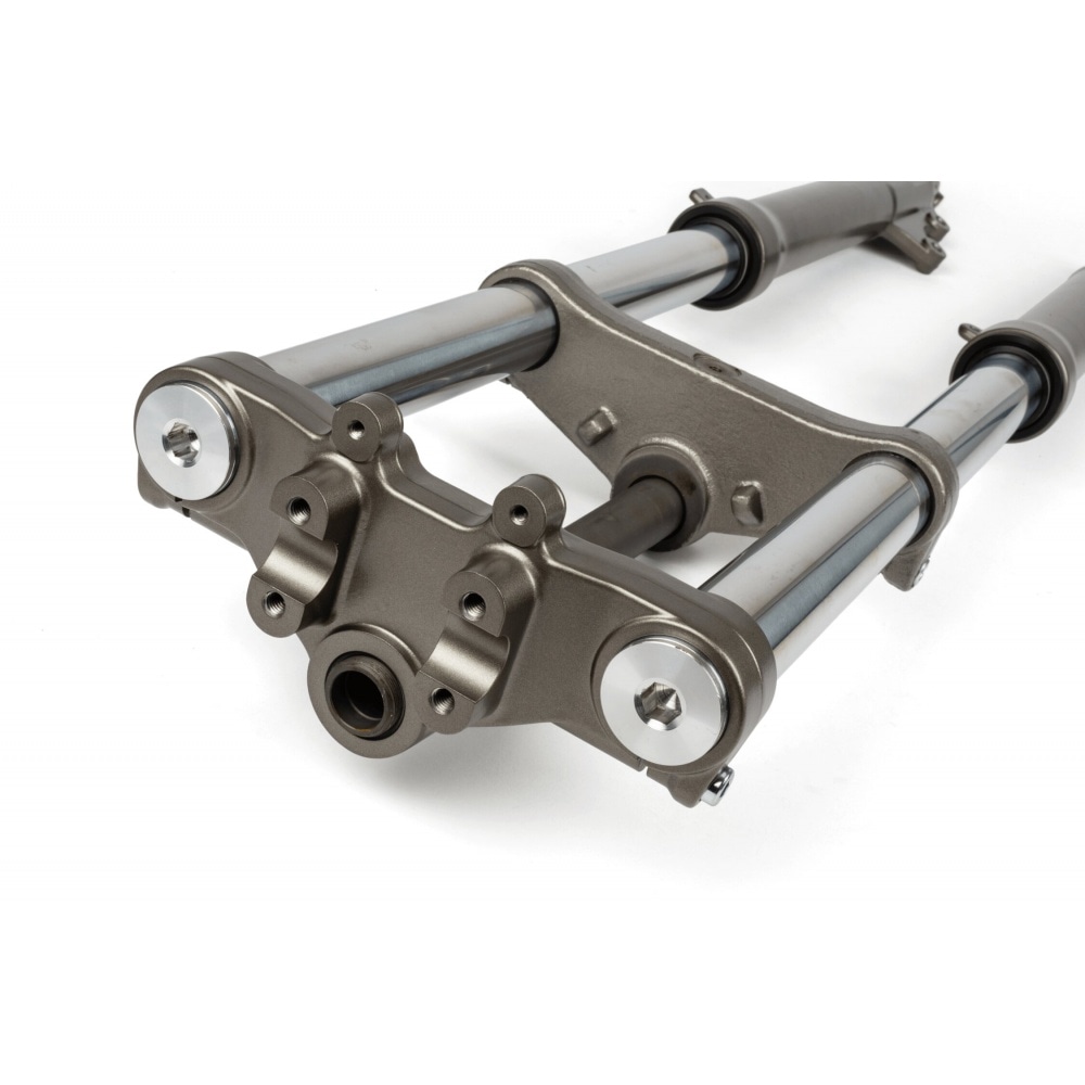 The fork is supplied without steering column bearings, so we recommend replacing them with new ones.