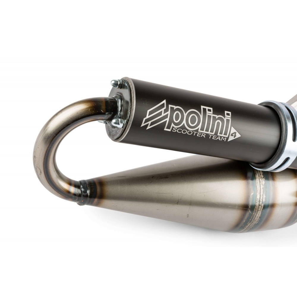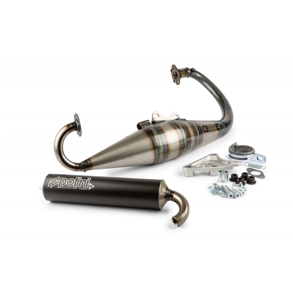 Polini Exhaust TEAM 4 CE Minarelli vertical (Yamaha BW's / Slider). Polini's TEAM exhausts are road-legal, but noticeably improve the the output of your engine, especially at mid rpm range.