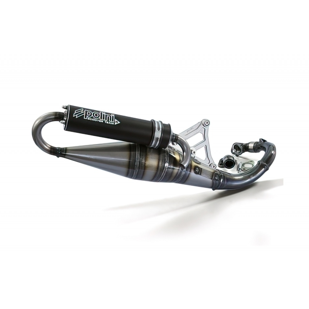 Polini Exhaust TEAM 4 CE Piaggio AC (Zip / Typhoon). Polini's TEAM exhausts are road-legal, but noticeably improve the the output of your engine, especially at mid rpm range.