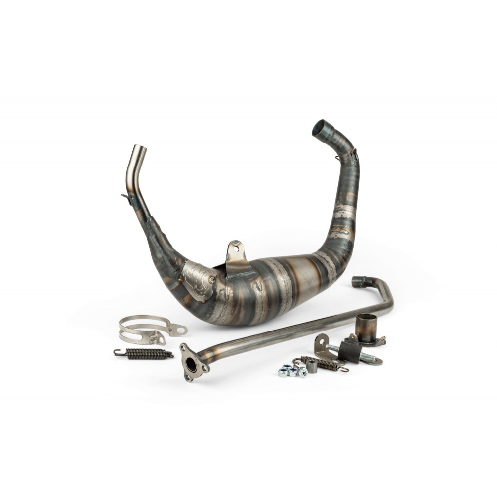 - Exceptional Performance: This exhaust excels when paired with large-volume racing cylinders (70cc, 80cc, and beyond), making it one of the most powerful exhaust systems on the market. It is particularly suited for drag racing applications, delivering optimal performance in the high-rev range. To achieve the best results, we recommend the use of a larger carburetor (at least 28 mm).