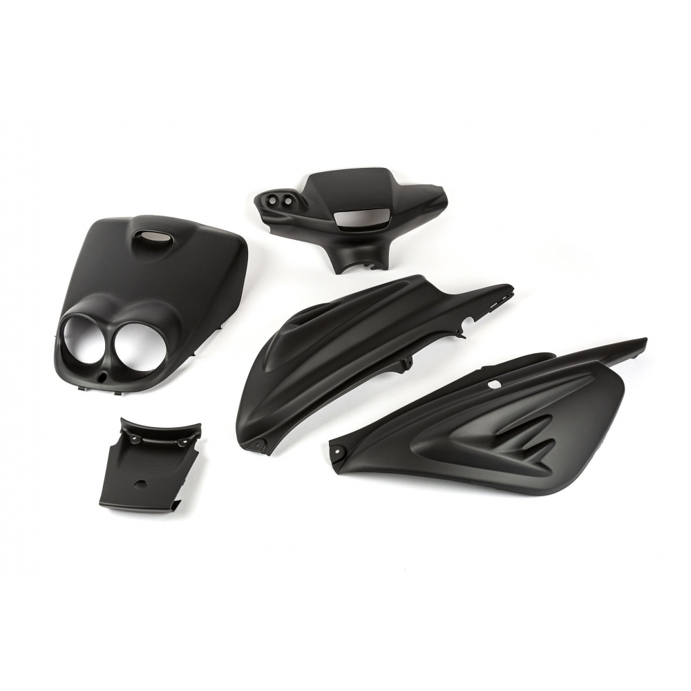 Fairing Kit (5 pcs.) matte black MBK Rocket / Yamaha Spy. The kit includes 5 fairing panels. It will make your scooter shine like new again, and by buying the kit you won't have to search for individual fairing parts.
