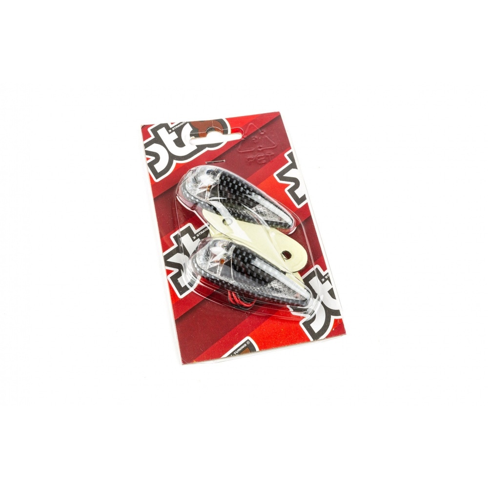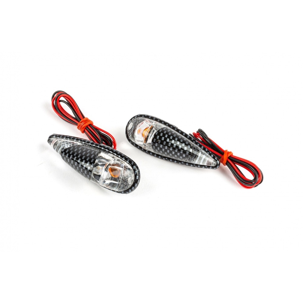 Beautiful drop-shaped Indicators / Lamps glue-on drop-shaped Fender carbon / white / orange. Sold as pair.