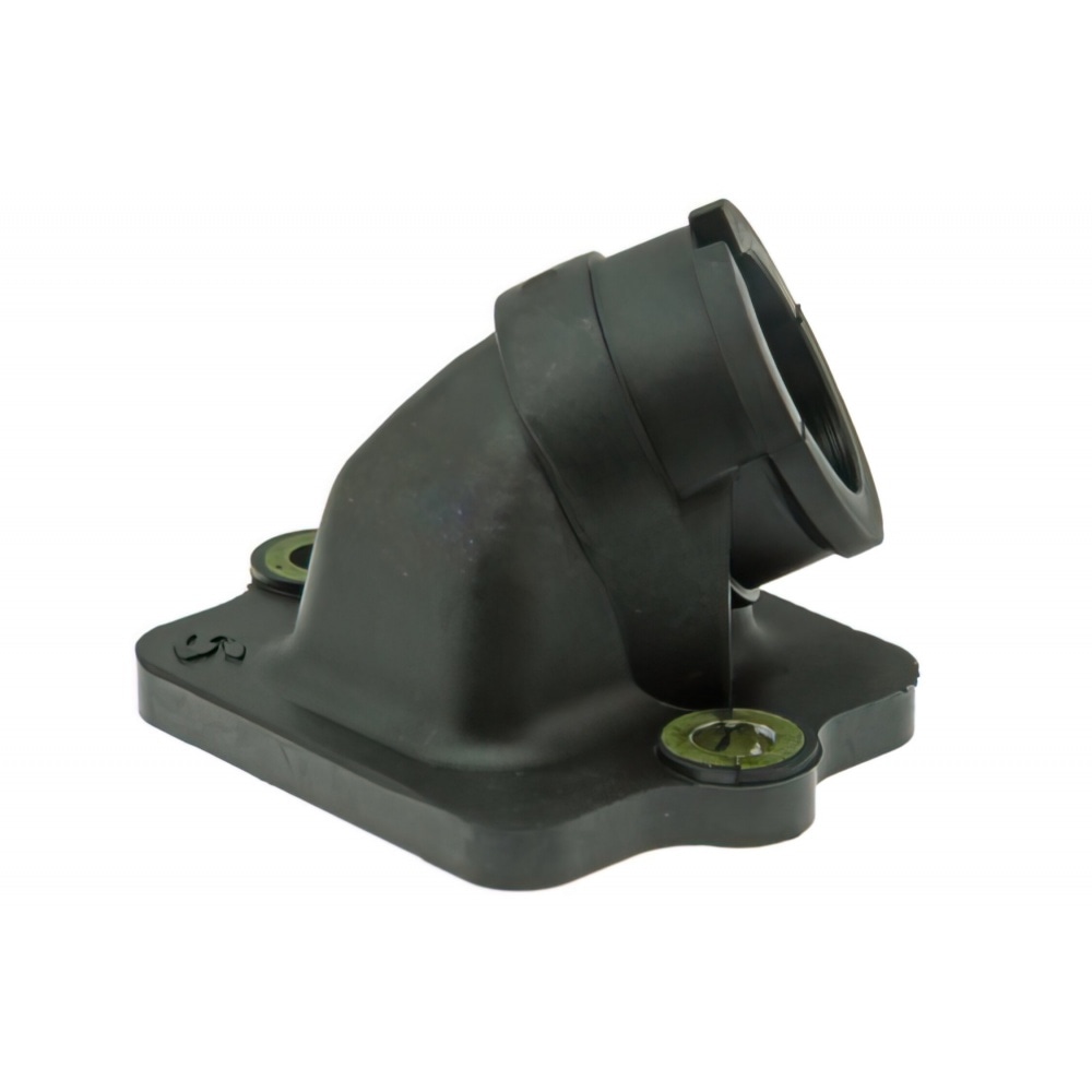 Intake Manifold derestricted 21mm Piaggio / Gilera / Derbi / Vespa. Many stock scooter engines are restricted via an intake manifold. Replacing the stock manifold with this open, unrestricted version will boost performance. This becomes particularly important when switching to a larger carburetor. This intake manifold is suitable for 17.5mm to 21mm carburetors.