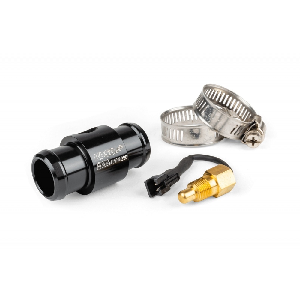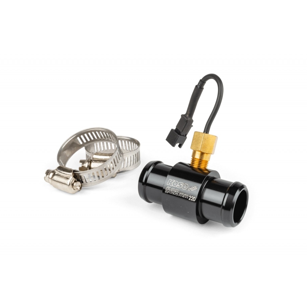 This Koso Temperature Sensor + Adapter for all radiator hoses with diameters between 14mm and 26mm comes in handy in case the thread of your thermometer does not fit. It can be used with Stage6 multimeters or Koso thermometers / multimeters (old models with black connection).