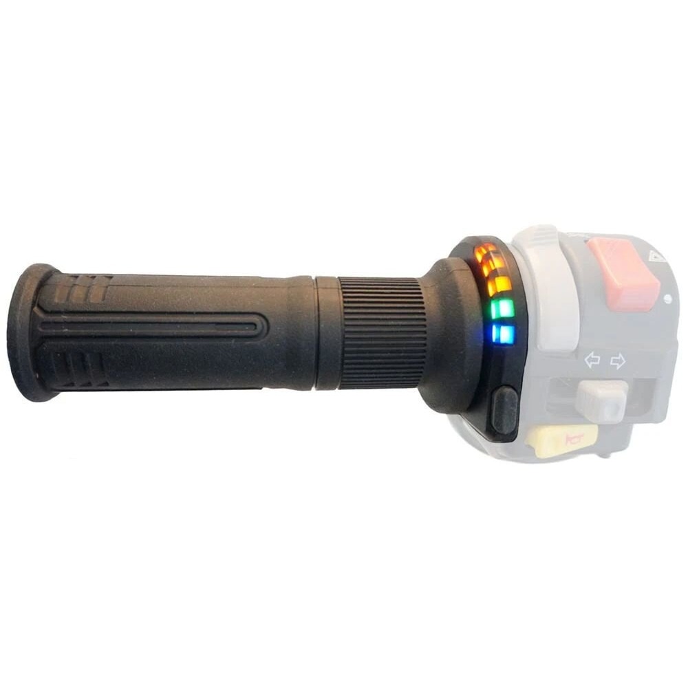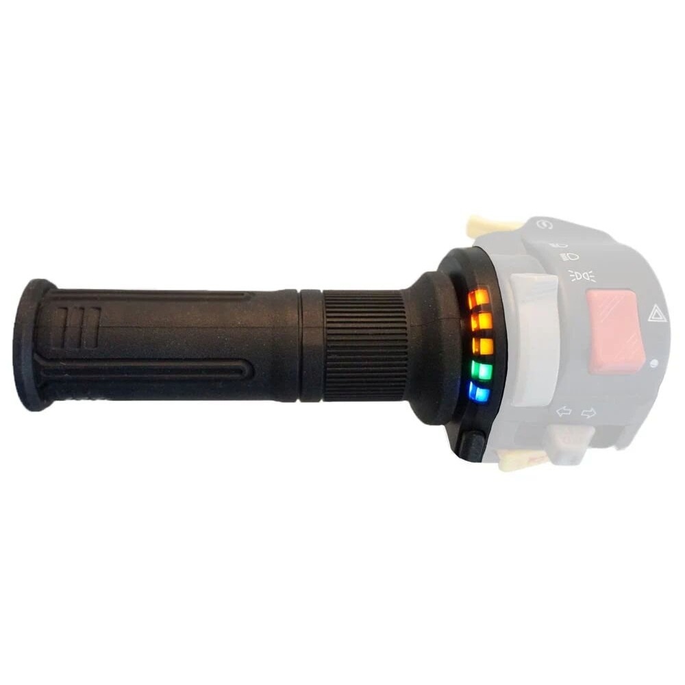 The heated grips are switched on and off with a practical thumb switch. The practical 5-stage controller with 5 different colored LEDs allows adjusting the temperature to the rider's needs at any time. One glance is enough to see which temperature level is currently set. The temperature levels are selected by repeatedly operating the switch without having to take your hands off the handlebar.