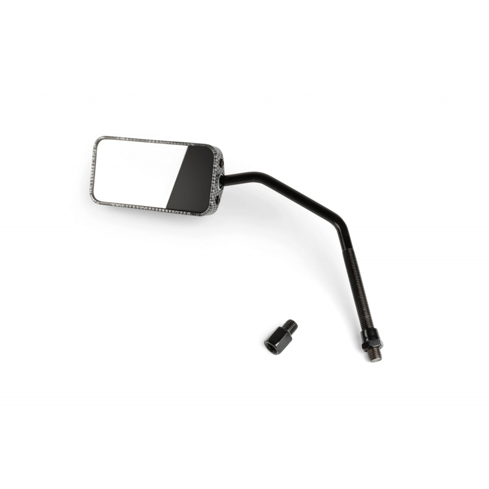 If you need a new mirror because the old one is broken, or to improve the look of your scooter:  Mirror F1 left / right left-hand thread D.10mm carbon. The F1 style mirror is a universal model and has an 10mm thread. Please check the thread diameter of the mirror mount before ordering. The mirror is reversible and can be mounted on the left or right side.