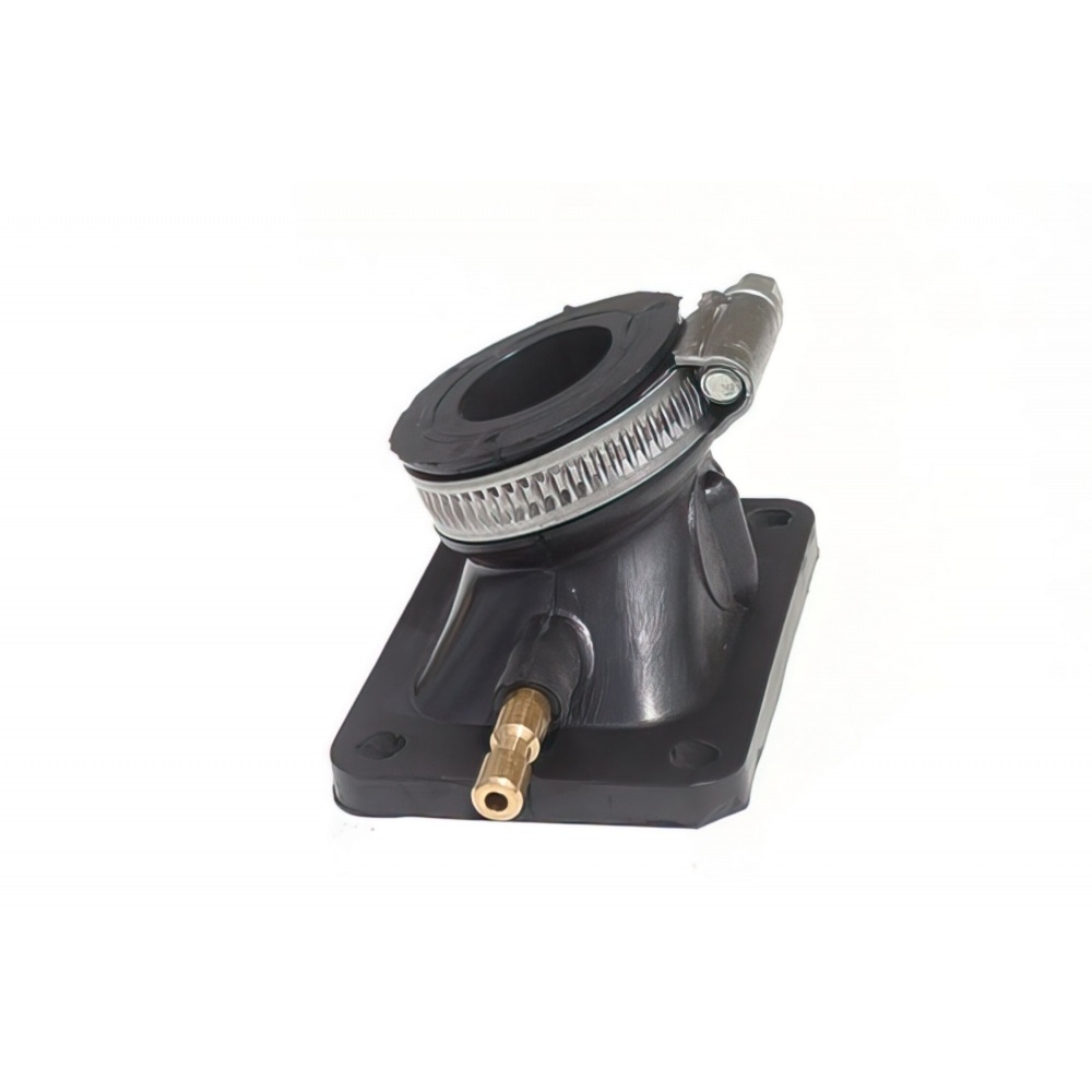 MVT racing intake manifold for Derbi. Metal mount with vulcanized rubber coating. Available in 2 versions with different diameters. This one is suitable for 17.5mm to 21mm carburetors. A clamp for mounting is included.